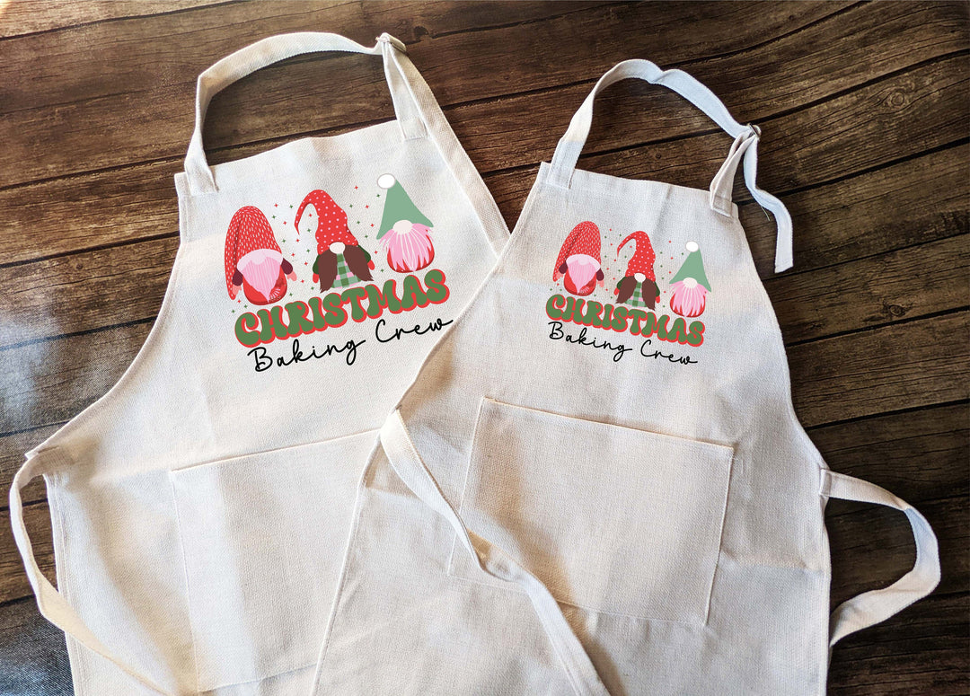 Christmas Baking Crew Aprons Adult Kids Matching Gift Set