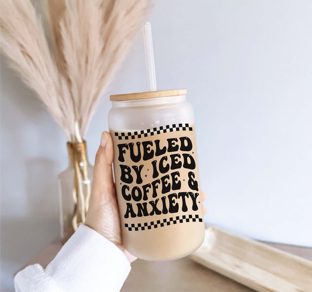 Fuel By Coffee And Anxiety Iced Coffee Glass With Lid