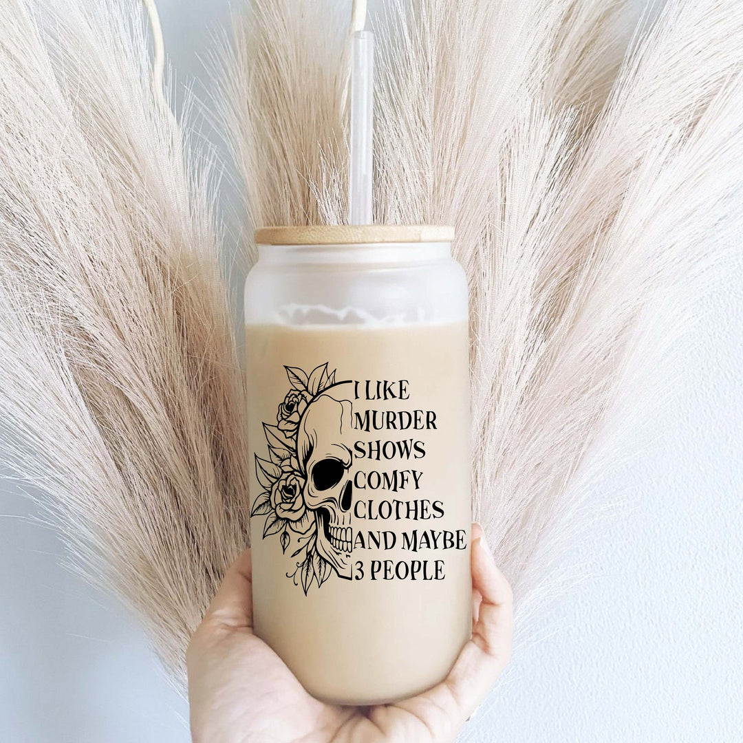 I Like Murder Shows Floral Skull Iced Coffee Glass Cup