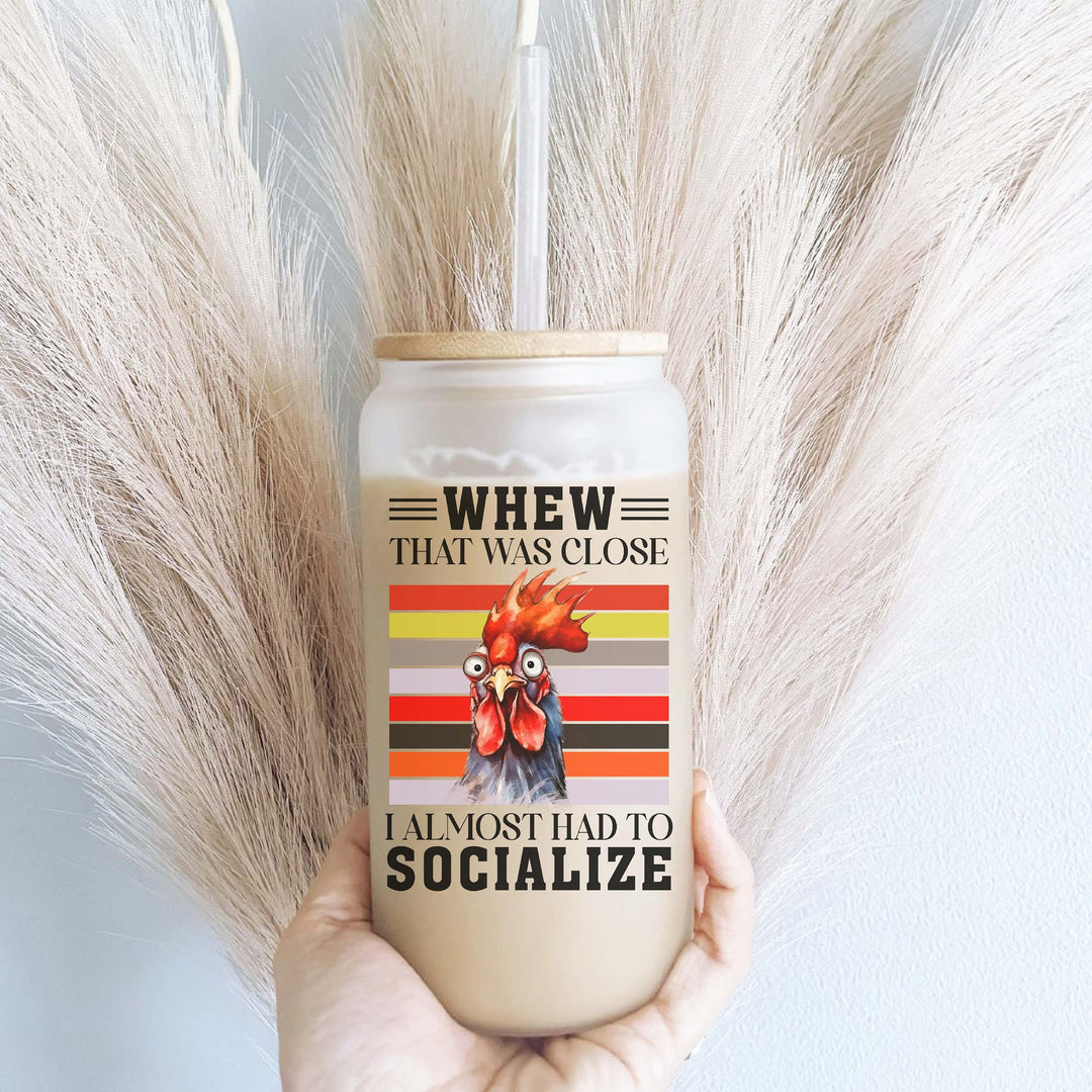 Iced Coffee Glass With Lid And Straw Sarcastic Funny Rooster
