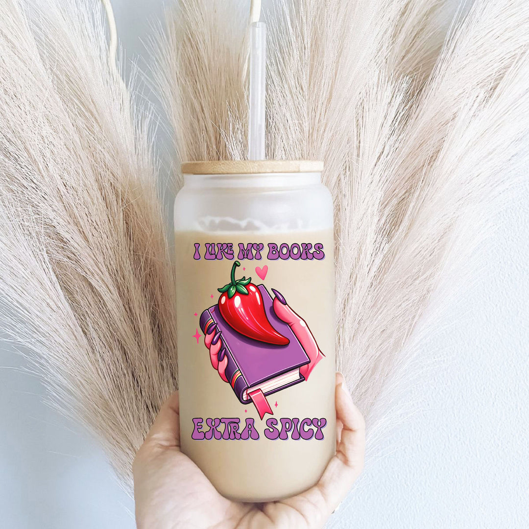 I Like My Books Extra Spicy Glass Coffee Cup With Lid