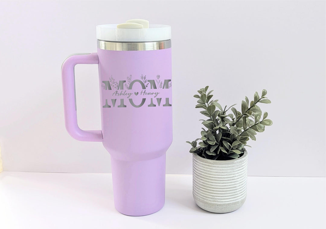 Mom Gift Tumbler 40 Oz Floral Handle Travel Cup Gift