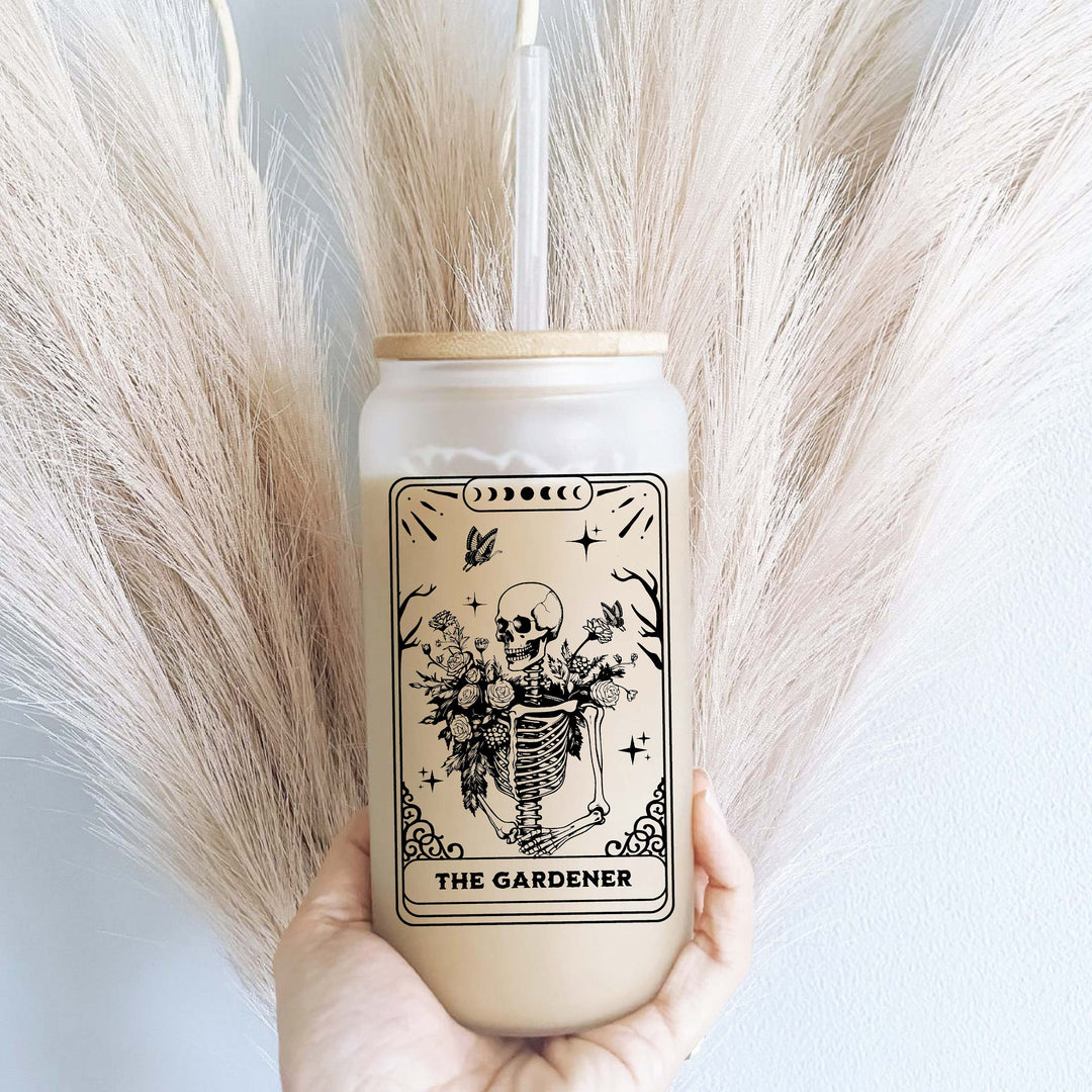 Skeleton Coffee Tarot Card Iced Coffee Glass Cup Tumbler