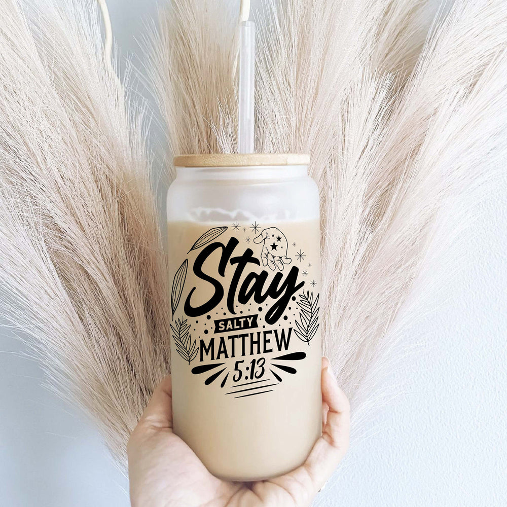 Stay Salty Matthew Christian Iced Coffee Glass Cup 16oz