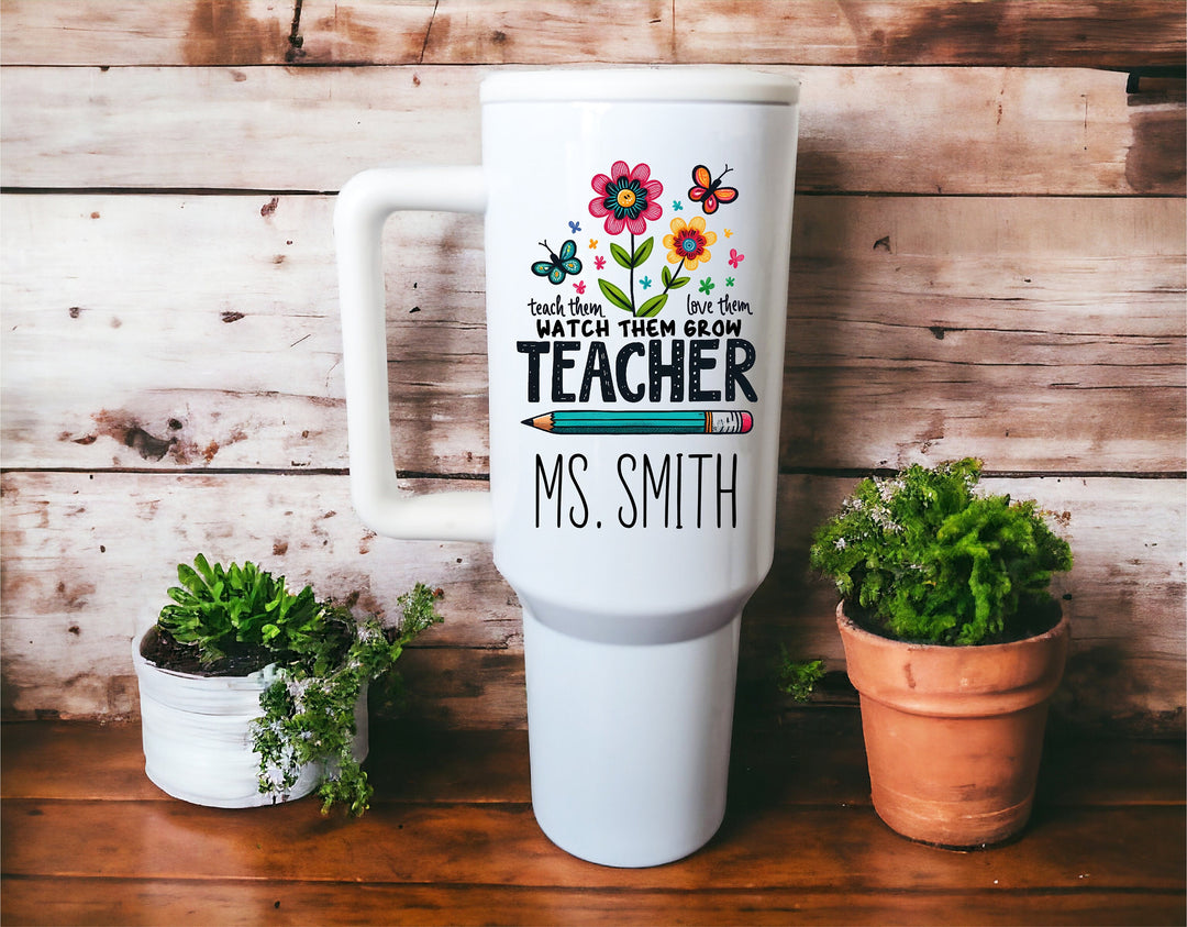 Custom Floral Teacher Gift Personalized Tumbler 40 oz