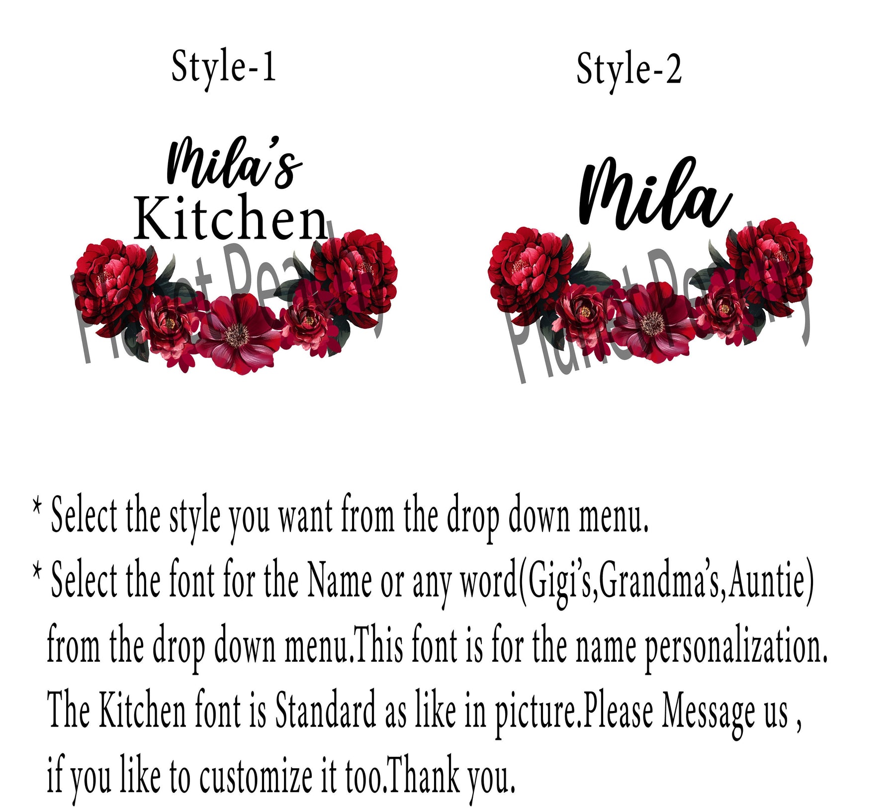 Ready to create your personalized apron? Simply choose your desired set from the drop-down menu, select your preferred font for personalization, and provide the name you’d like to include. It’s that easy!