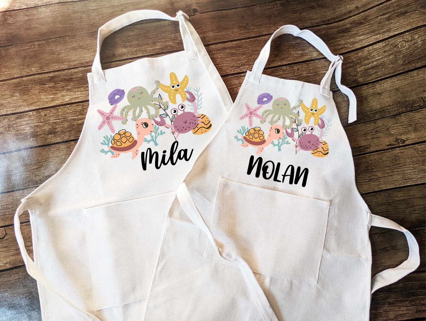 Personalized Ocean Apron for Kids Birthday Gift with Pocket
