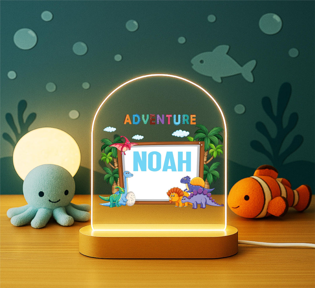 Personalized Dinosaur LED Night Light • Custom Kids Birthday Gift • Holiday Nursery Lamp for Boys Bedroom Décor