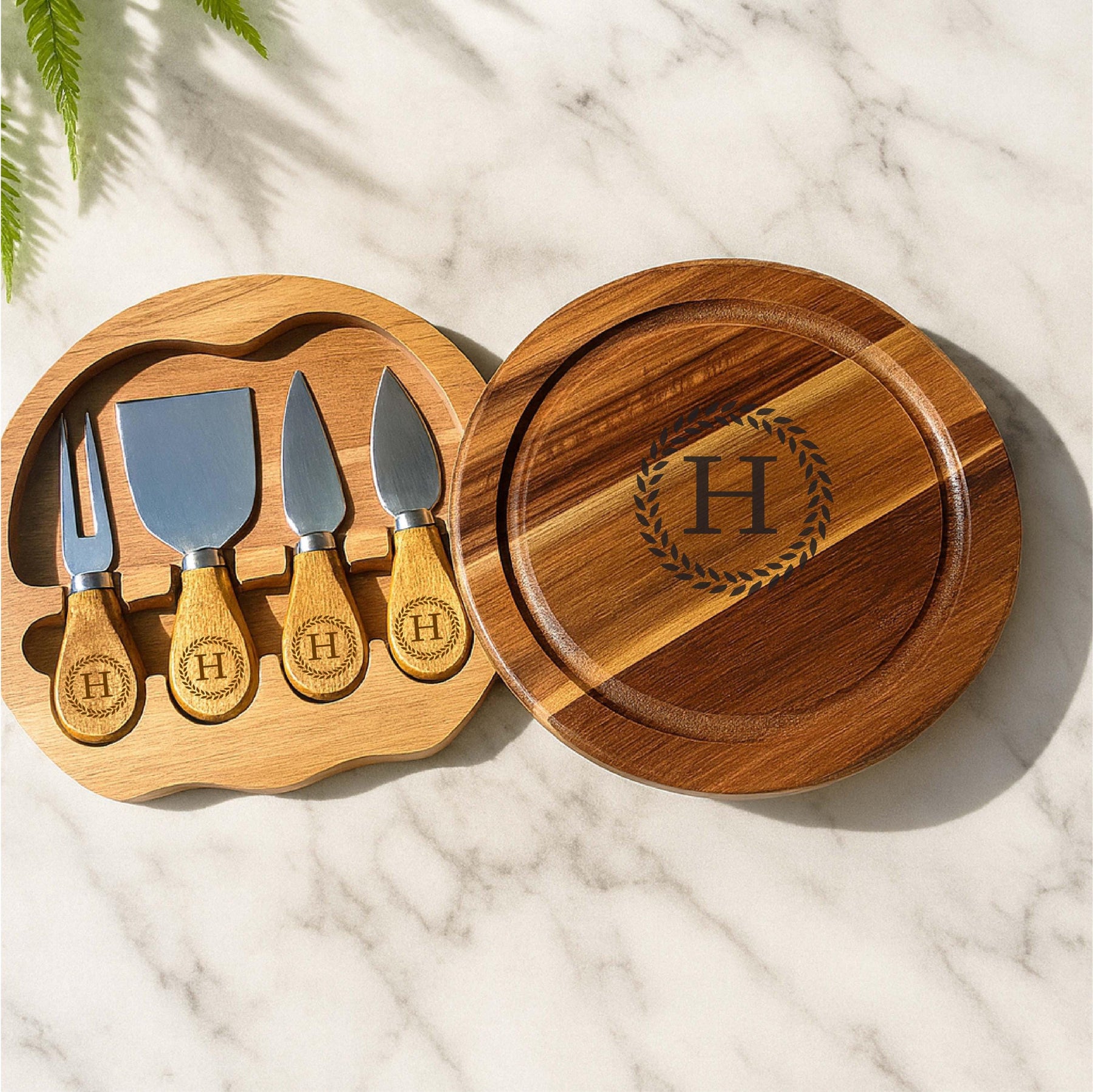 Personalized Cheese Board Set Christmas gift– Custom Engraved Acacia Wood Charcuterie Board with Knives, Holiday Gift for Couples or Family