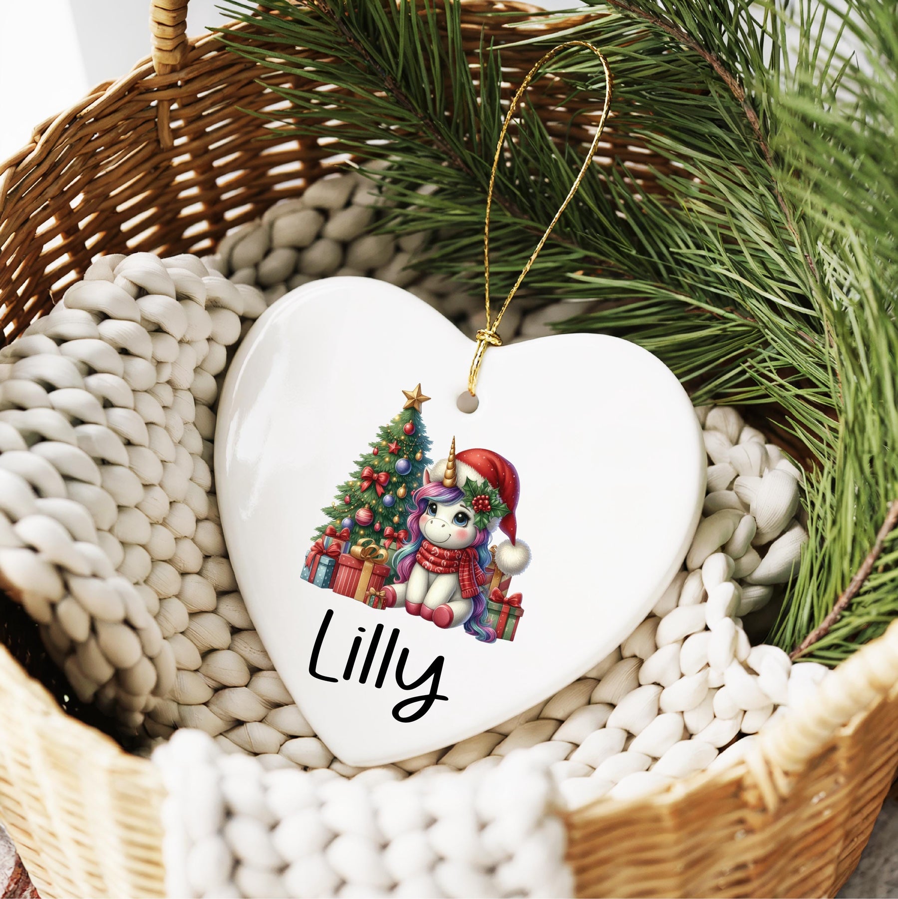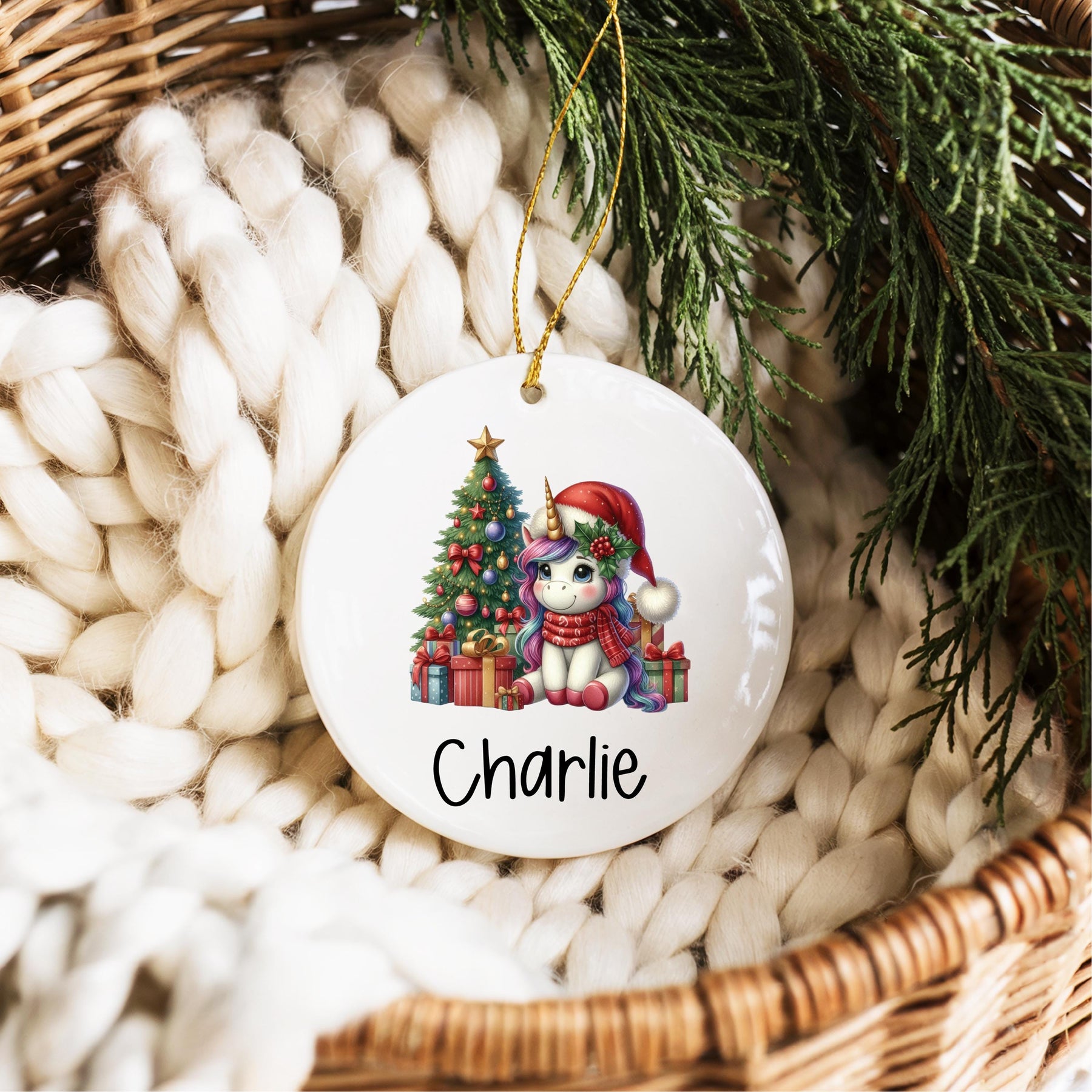 Personalized Unicorn Ornament – Custom Christmas Gift for Kids, Cute Unicorn with Tree, Name Ornament for Girls, Holiday Keepsake