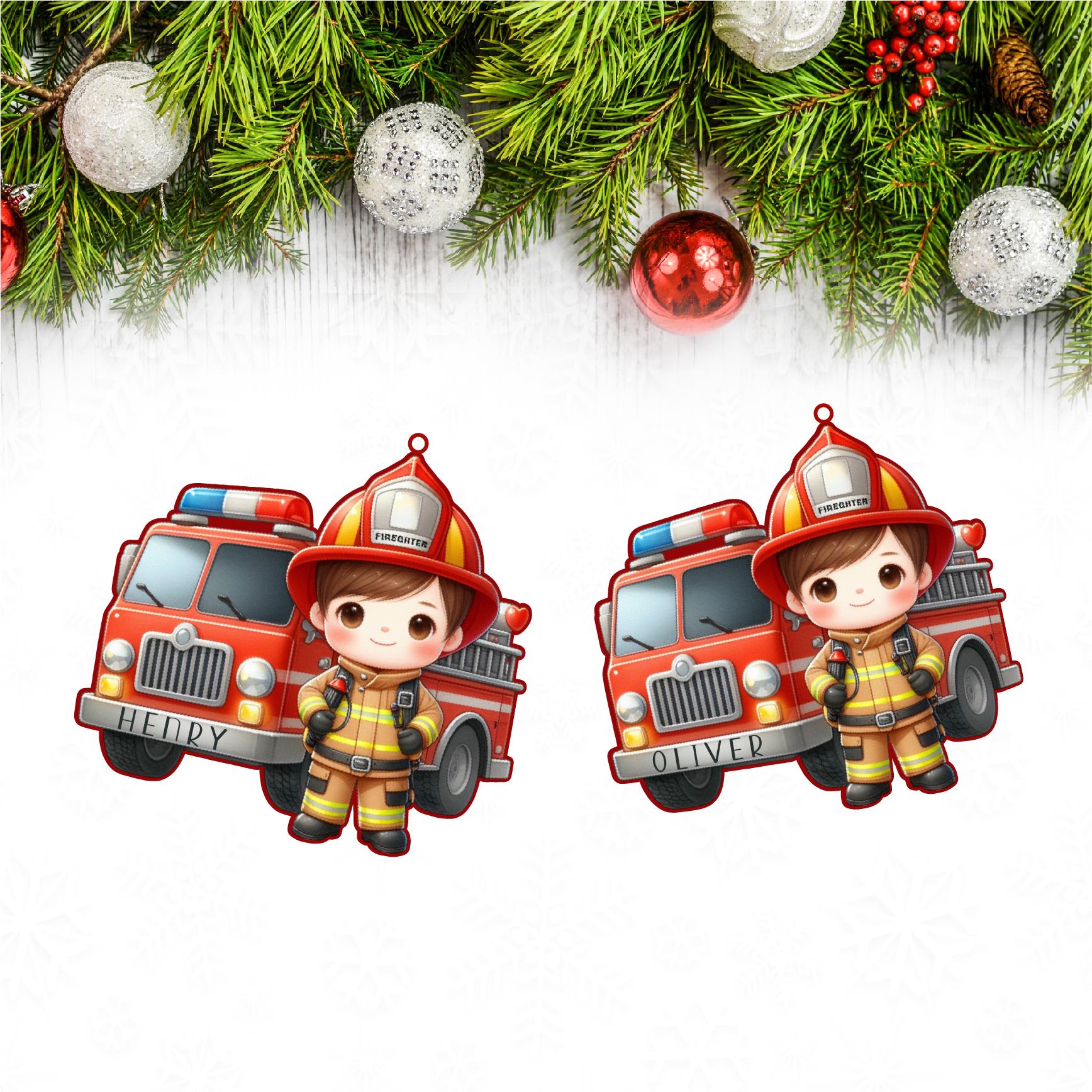 Personalized Firefighter Kids Christmas Ornament Custom Name