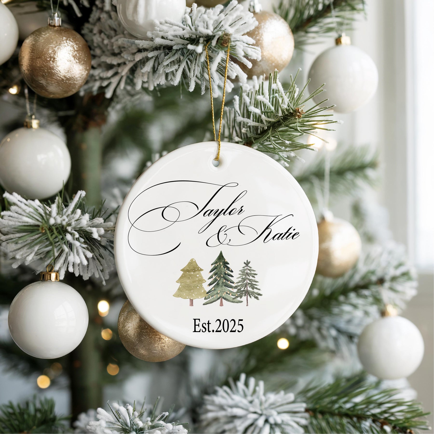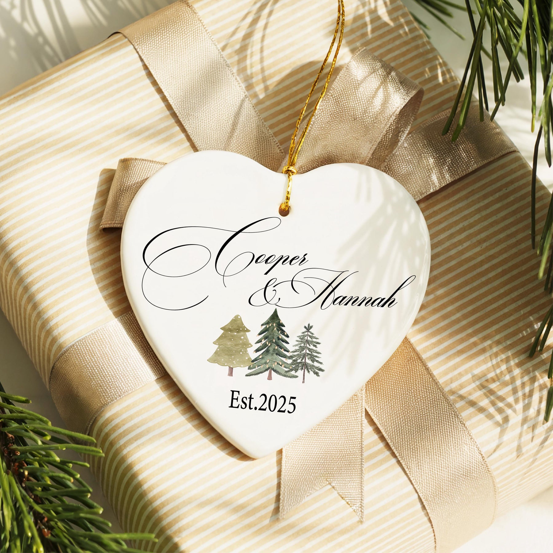 Personalized Christmas Ornament: Custom Names & Est. Year, Ceramic or Heart