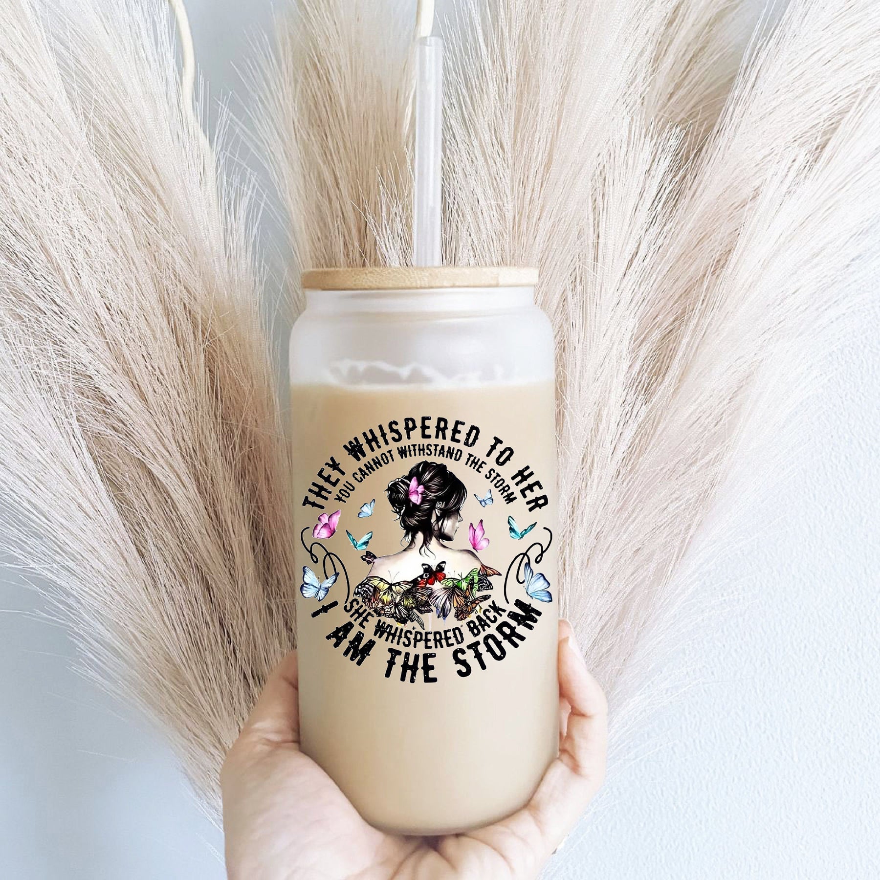 Discover the perfect addition to your beverage collection with our Iced coffee cups They whispered to her Iced coffee glass can with bamboo lid, I am the Strom Frosted/Clear glass can cup with lid and straw. This 16oz glass tumbler is not just functional; it’s a statement piece that elevates your drinking experience. Whether you’re sipping refreshing iced coffee, enjoying a chilled soda, or indulging in a favorite cocktail, this glass can handle it all with style.
