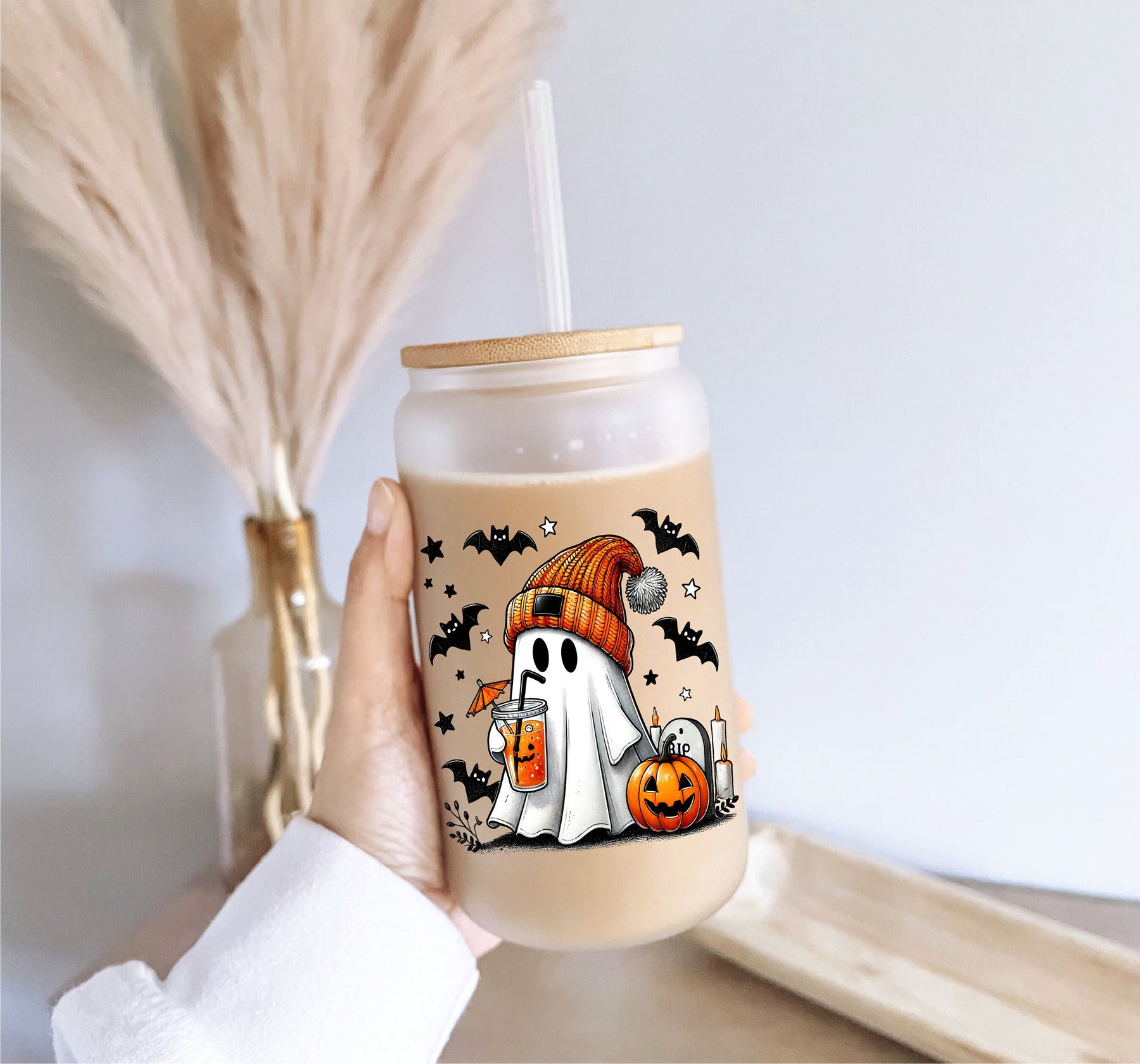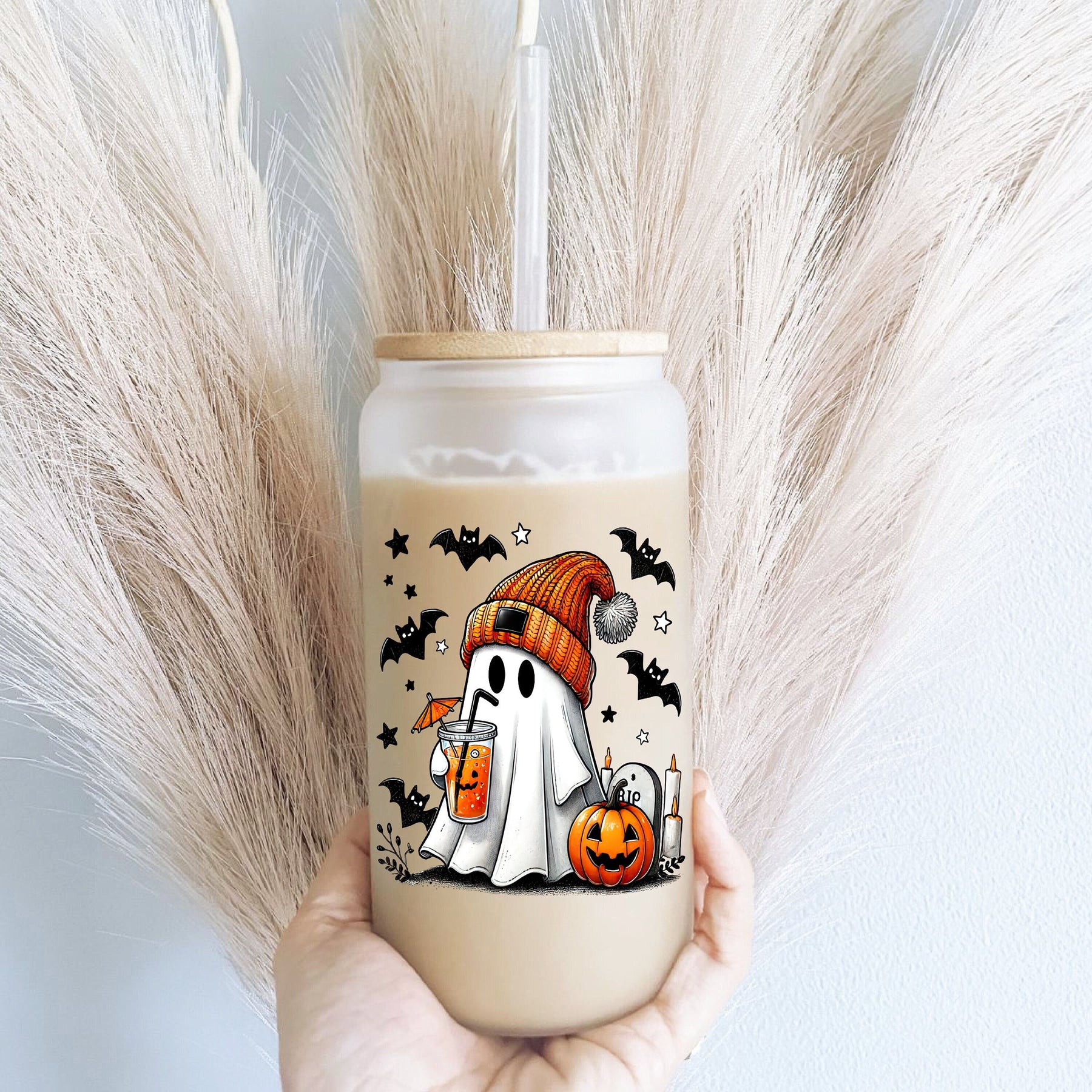 Elevate your beverage experience this Halloween with our Coffee ghost Halloween cups fall ghost coffee cup ghost pumpkin Iced coffee Glass cup with lid and straw Halloween gift cup coffee lover cup, and enjoy every sip with a touch of seasonal flair!