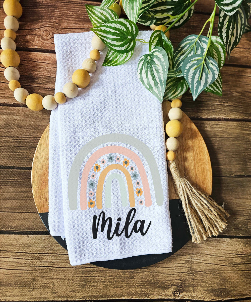 Personalized Rainbow Tea Towel Custom Dish Towel Gift