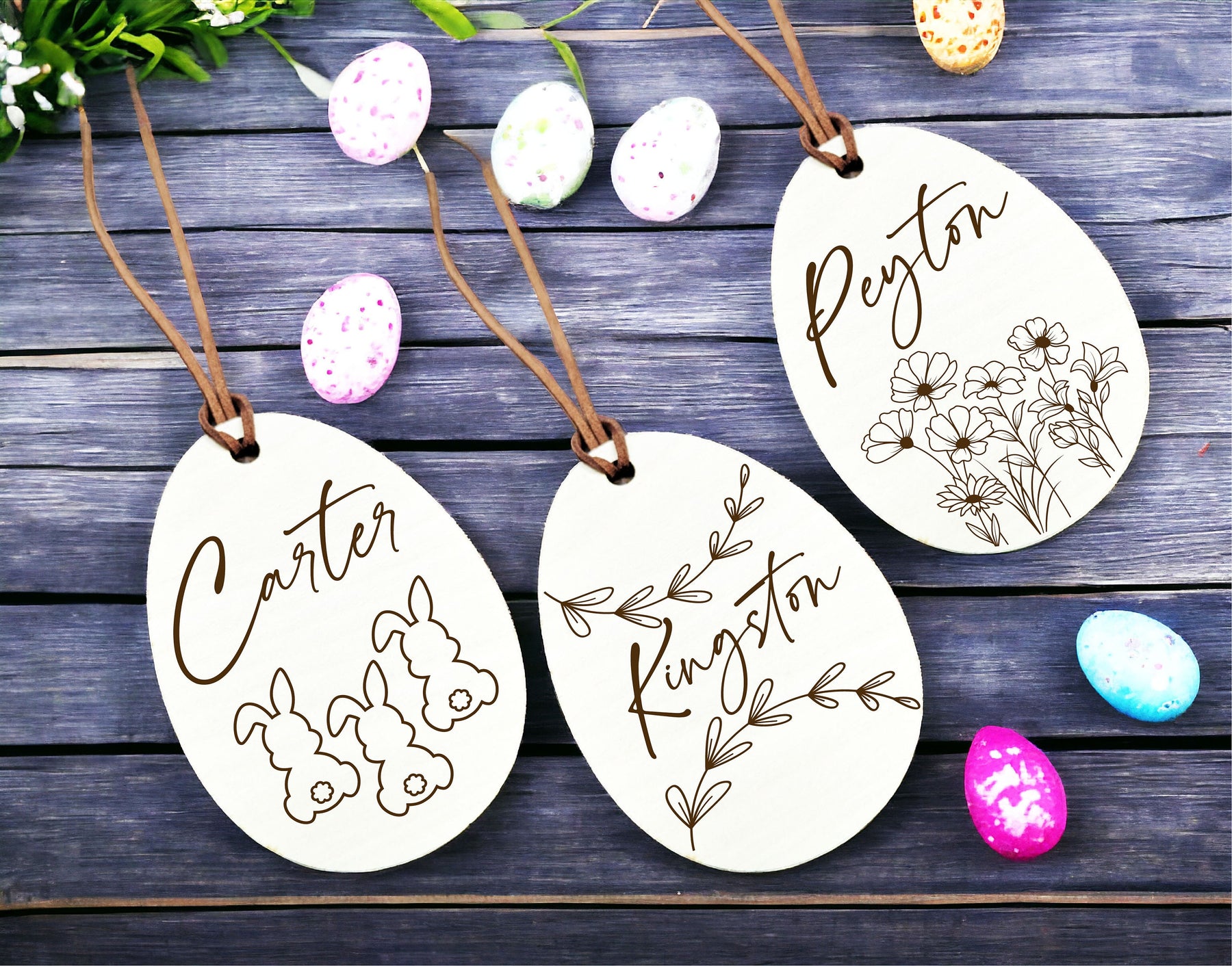 Elevate your holiday celebrations with our exquisite Easter Name Tags Personalized Minimalist egg Name Tag custom easter Basket bunny Tag Easter Tags for easter basket Kids name Tag engraved, and let your festive charm shine!