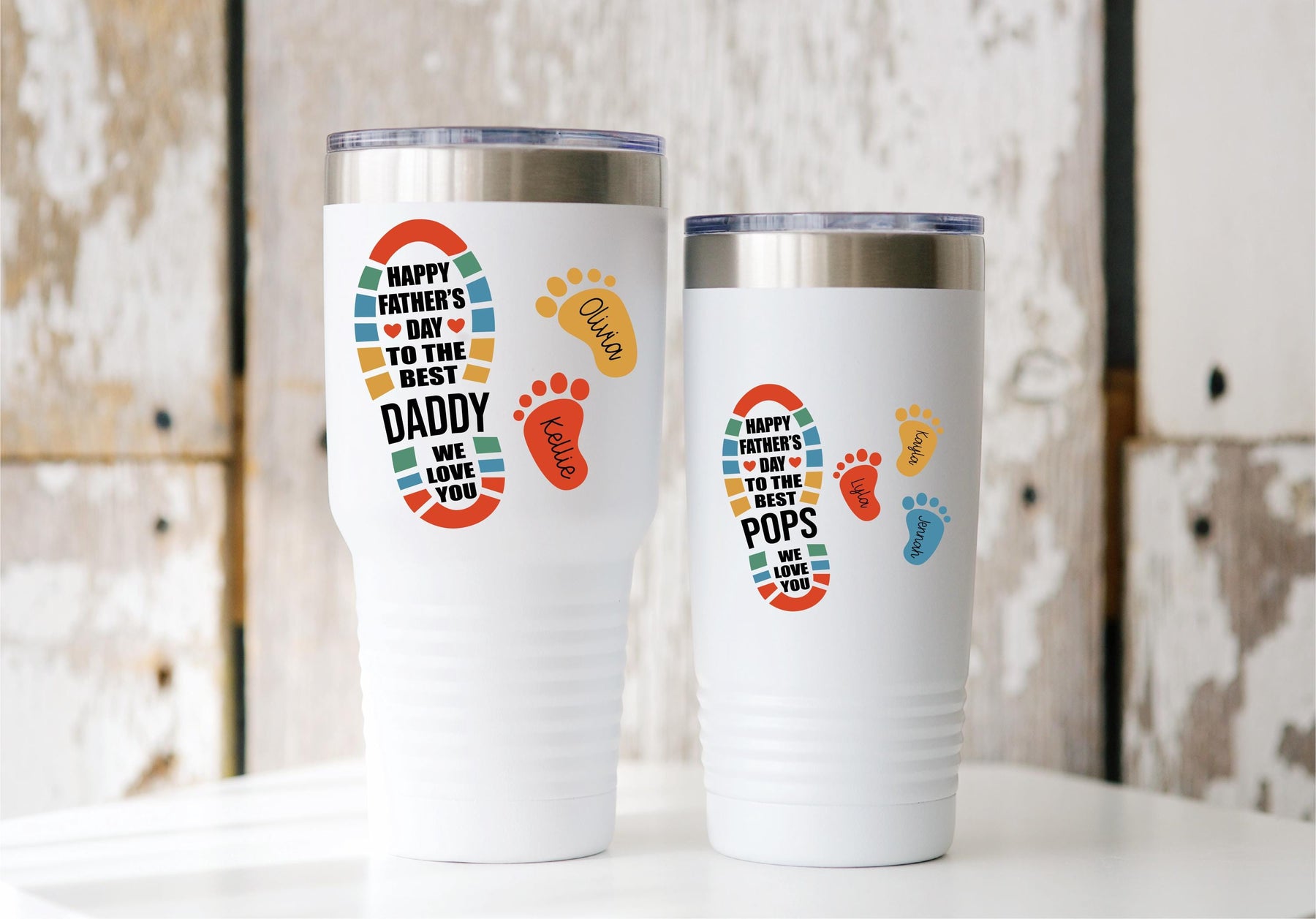 Dad foot print tumbler with kids name Personalized dad gift Custom Papa cup Fathers day gift tumbler Grandpa birthday gift dad from kids