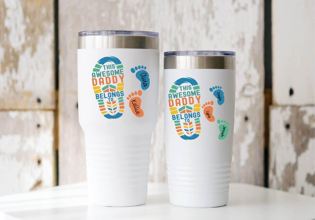 Birthday gift for grandma Dad foot print tumbler with kids name Personalized dad gift Custom Papa cup Fathers day gift tumbler Pop from kids