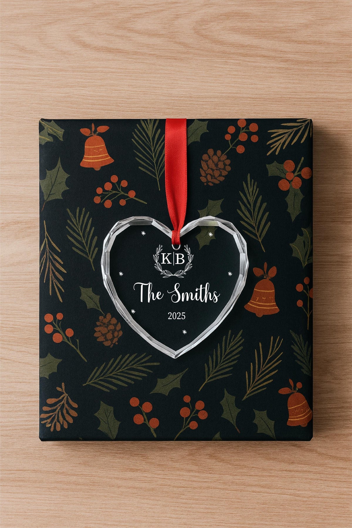 Personalized Family Name Ornament 2025 – Custom Glass Keepsake with Initials, Holiday Gift for Newlyweds, Couple or Family