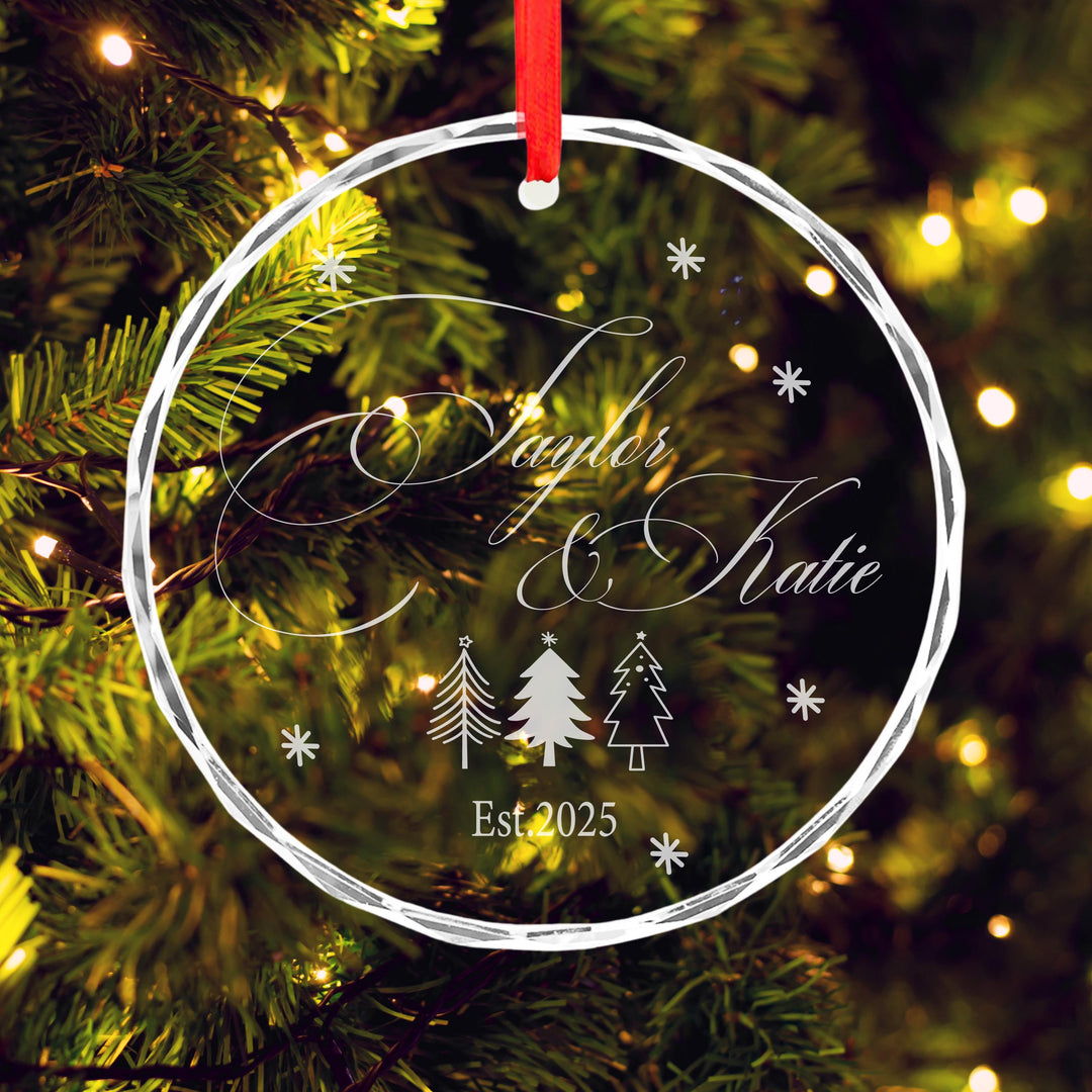 Personalized Couple Christmas Ornament 2025 • Custom Newlywed Tree Decoration • Engraved Glass Holiday Keepsake Gift