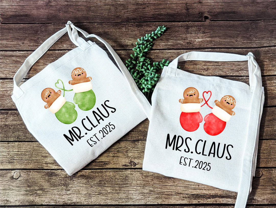 Mr. and Mrs. Claus Apron Set | First Christmas Gift for Couples | Newlywed Holiday Aprons | Personalized Baking Gift for couples
