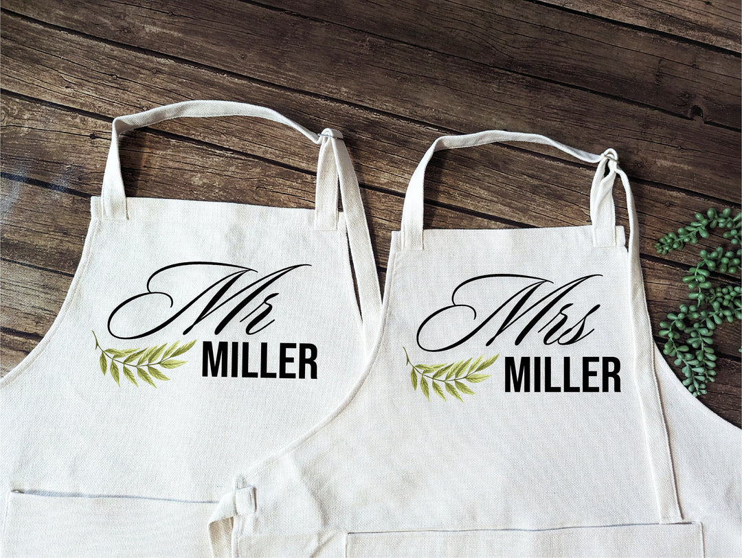 Mrs Anniversary Gift Apron Mr Personalized Couple Matching Apron