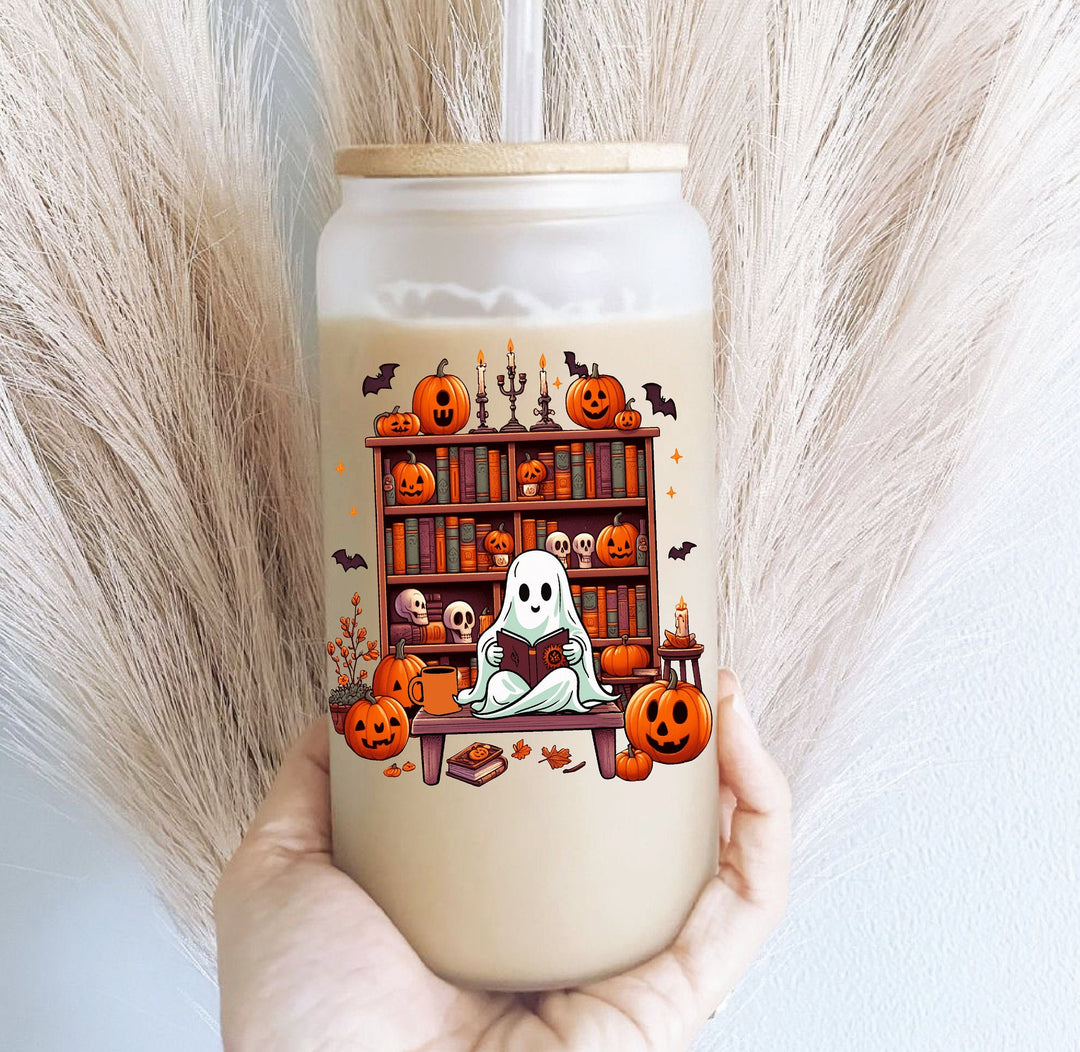 Halloween Bookish Ghost Iced Coffee Glass Cup Reader Gift