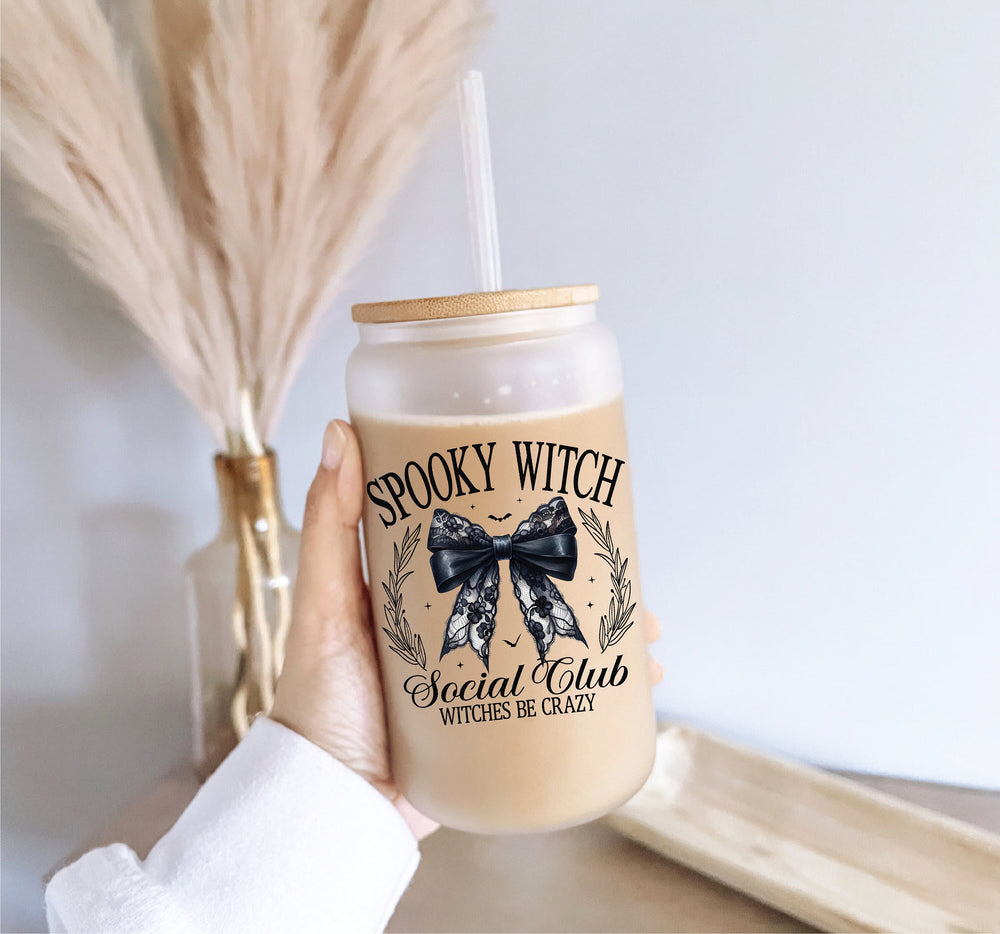 Funny Witch Frosted Glass Can Cup: Bitchcraft Halloween Iced Coffee Tumbler