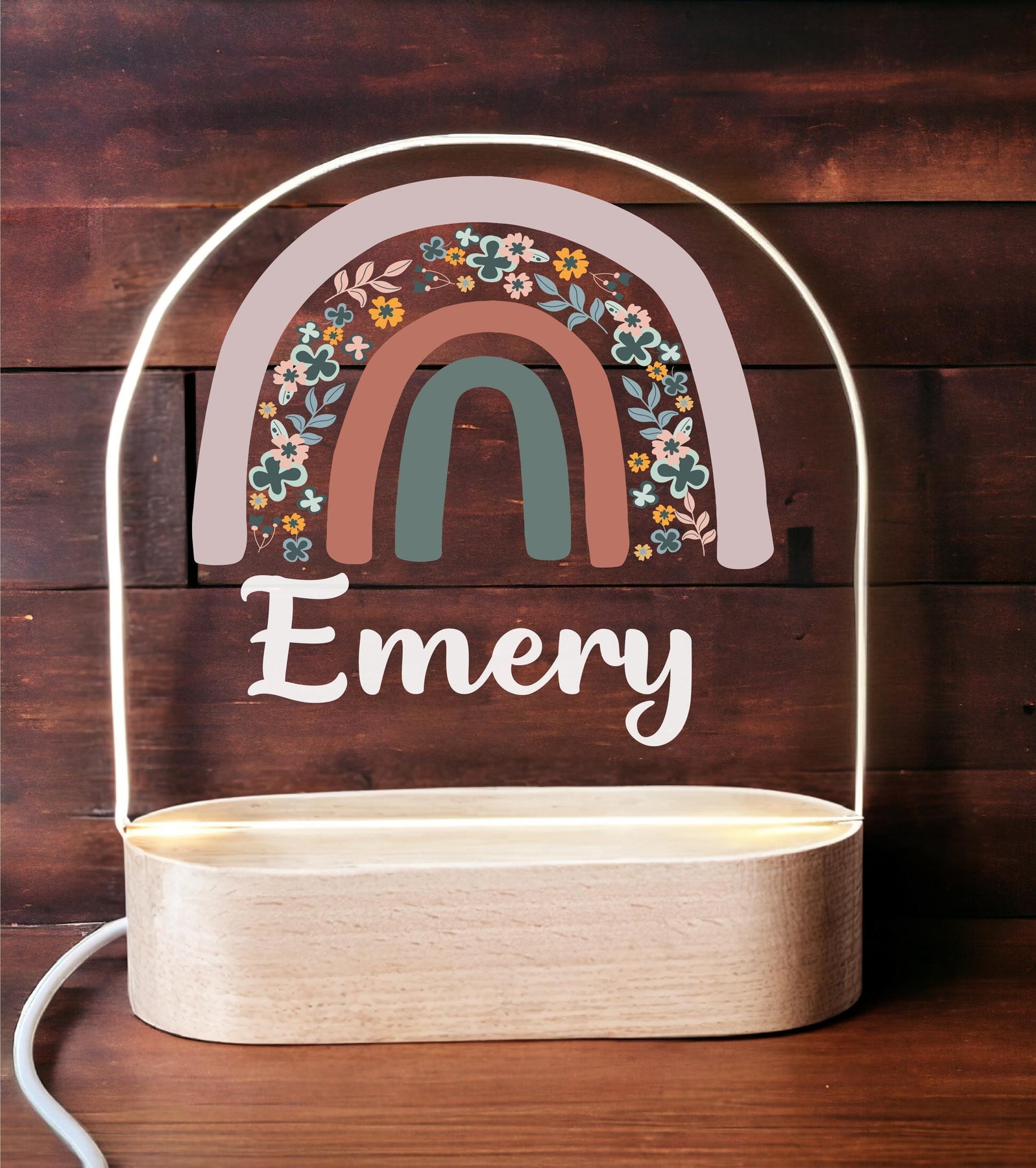 This personalized LED light is a delightful gift for birthdays, baby showers, or just because. Each custom piece is professionally UV printed, ensuring vibrant colors and clarity. With its charming boho rainbow design, it’s a delightful addition to any toddler's room, sparking joy and creativity.