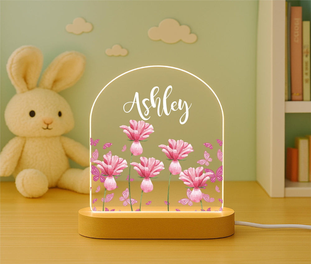 Personalized Floral Kids Night Light Custom Name Room Decor