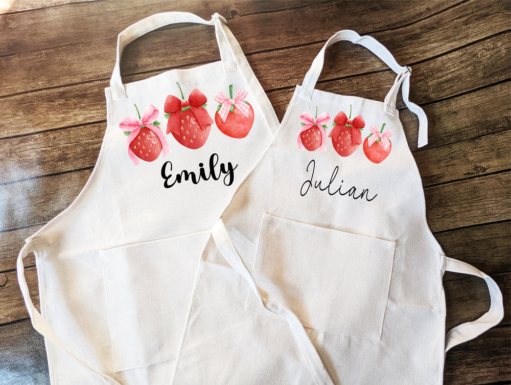 The Coquette Bow Kitchen apron for women Linen Apron kids Custom strawberry baking Mommy and me Matching apron Kids Birthday gift aprons makes for an extraordinary gift. Whether it’s for a bridal shower, a housewarming, or a special birthday, this apron set is sure to bring smiles. Ideal for culinary enthusiasts or mothers who enjoy baking with their kids, this apron set blends practicality with style.