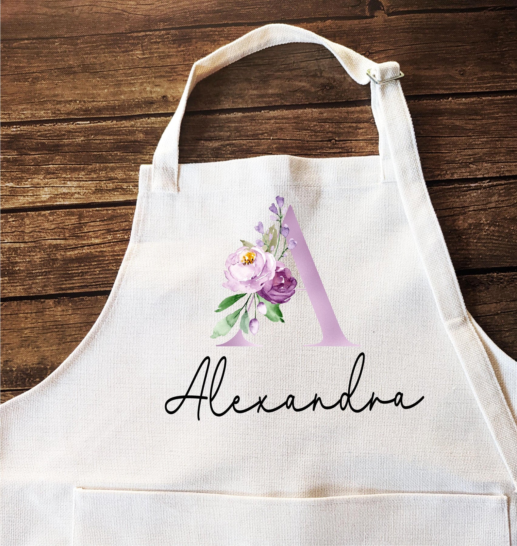 Personalized Apron with Name Floral Monogram Kids gift Custom Kitchen Apron with Pocket | Birthday, Holiday, Mother’s Day