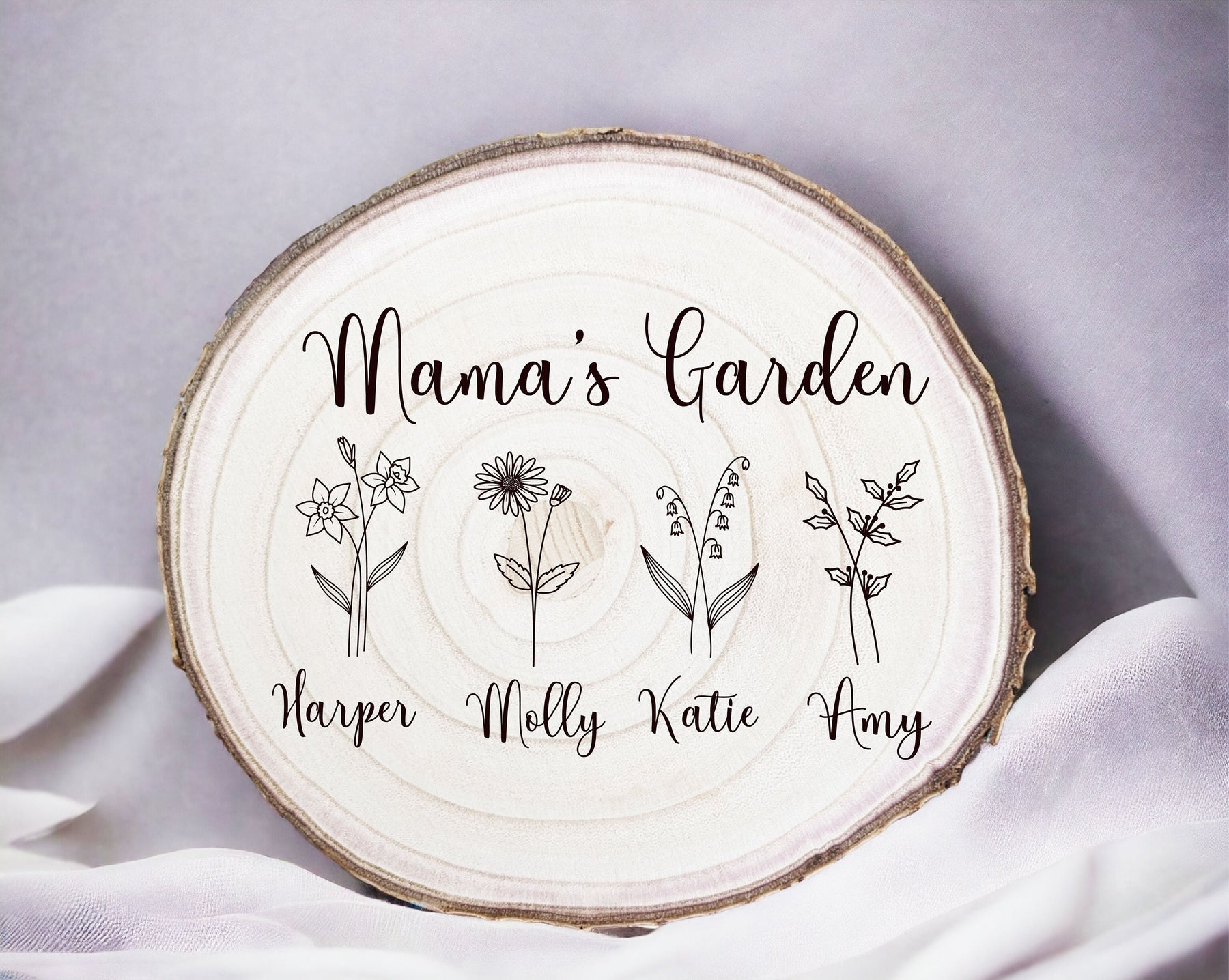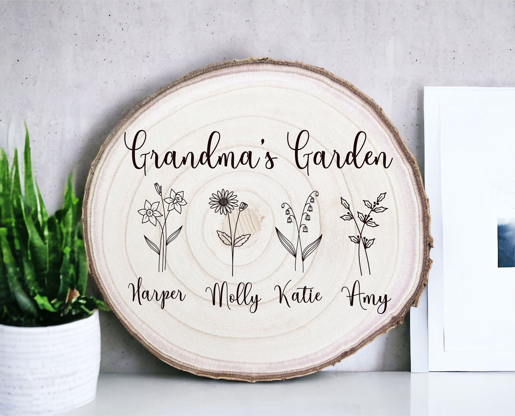 Discover the perfect Personalized Birth Flower engraved mama gift Grandma Mothers day gift with grandkids name Custom gift for Gigi Mimi mama gift with kids name. This enchanting piece is not merely a decorative board; it is a heartfelt tribute to family bonds that transforms Grandma’s kitchen into a warm, loving space. Each board, crafted with exceptional care, features the birth flowers of her grandchildren, representing the unique traits and personalities that make each family member special.