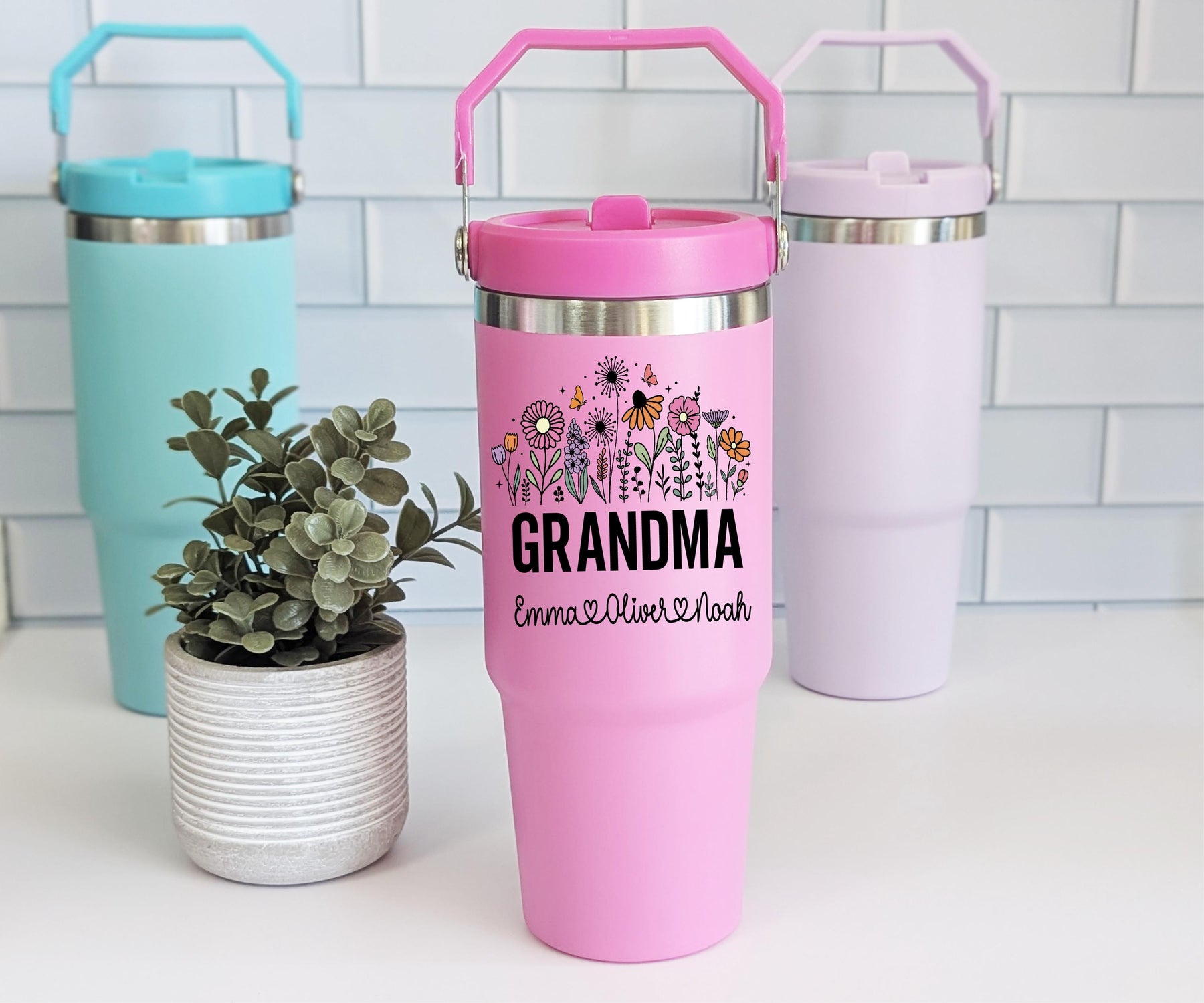 Celebrate the special bond between grandkids and their nana with our Personalized Floral Tumbler, a heartfelt gift that makes for a perfect Mother's Day present or grandma's birthday celebration. This 30 oz tumbler is not just a drinkware item; it’s a stylish statement piece designed to make every sip enjoyable.