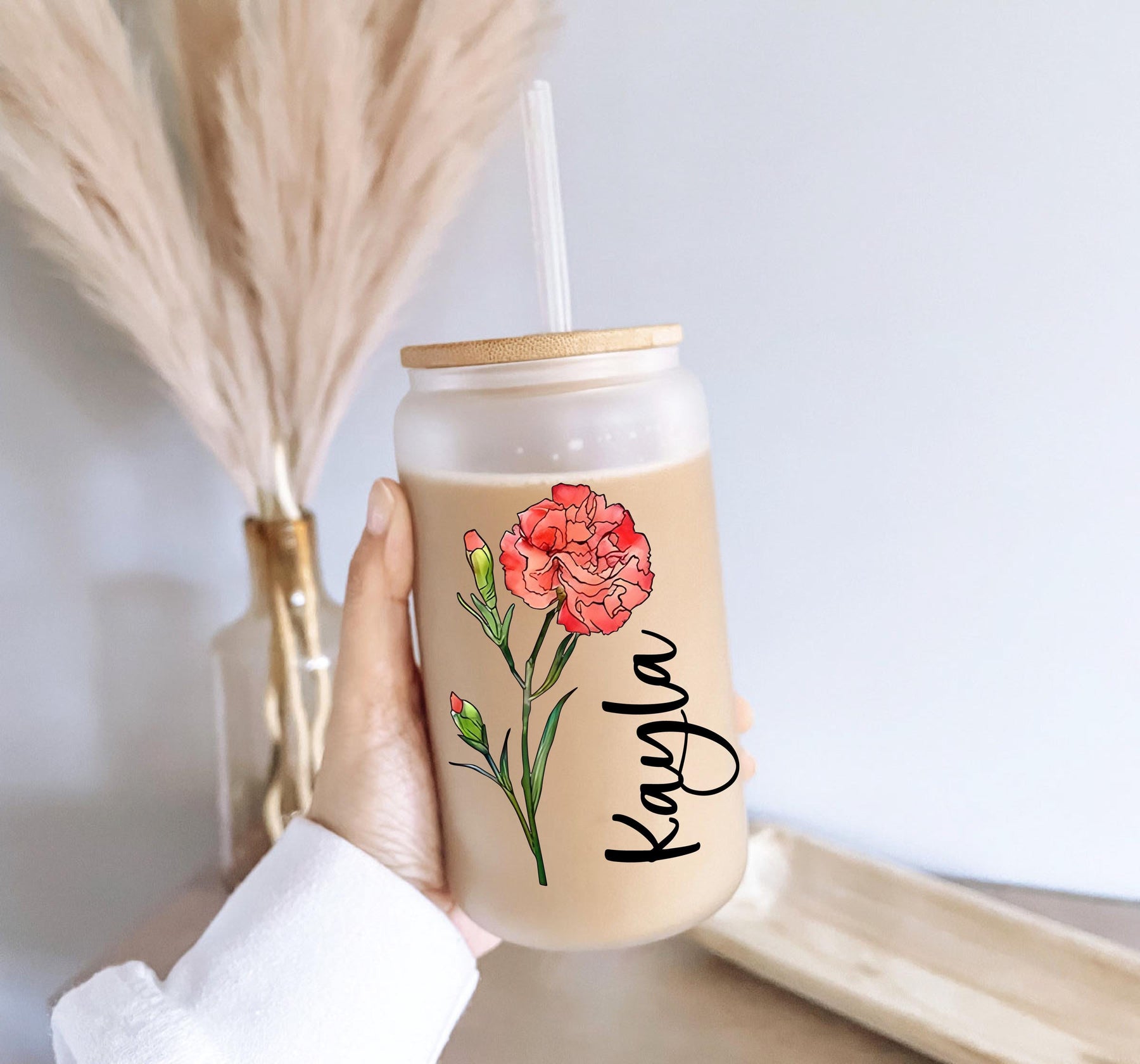 Celebrate the special women in your life with our Birth Flower Gift for Mother's Day. This beautifully designed coffee cup is the perfect way to express your love and appreciation for moms and grandmas alike. Crafted from high-quality glass, this 16oz iced coffee cup is both functional and elegant, making it an essential addition to any drinkware collection.