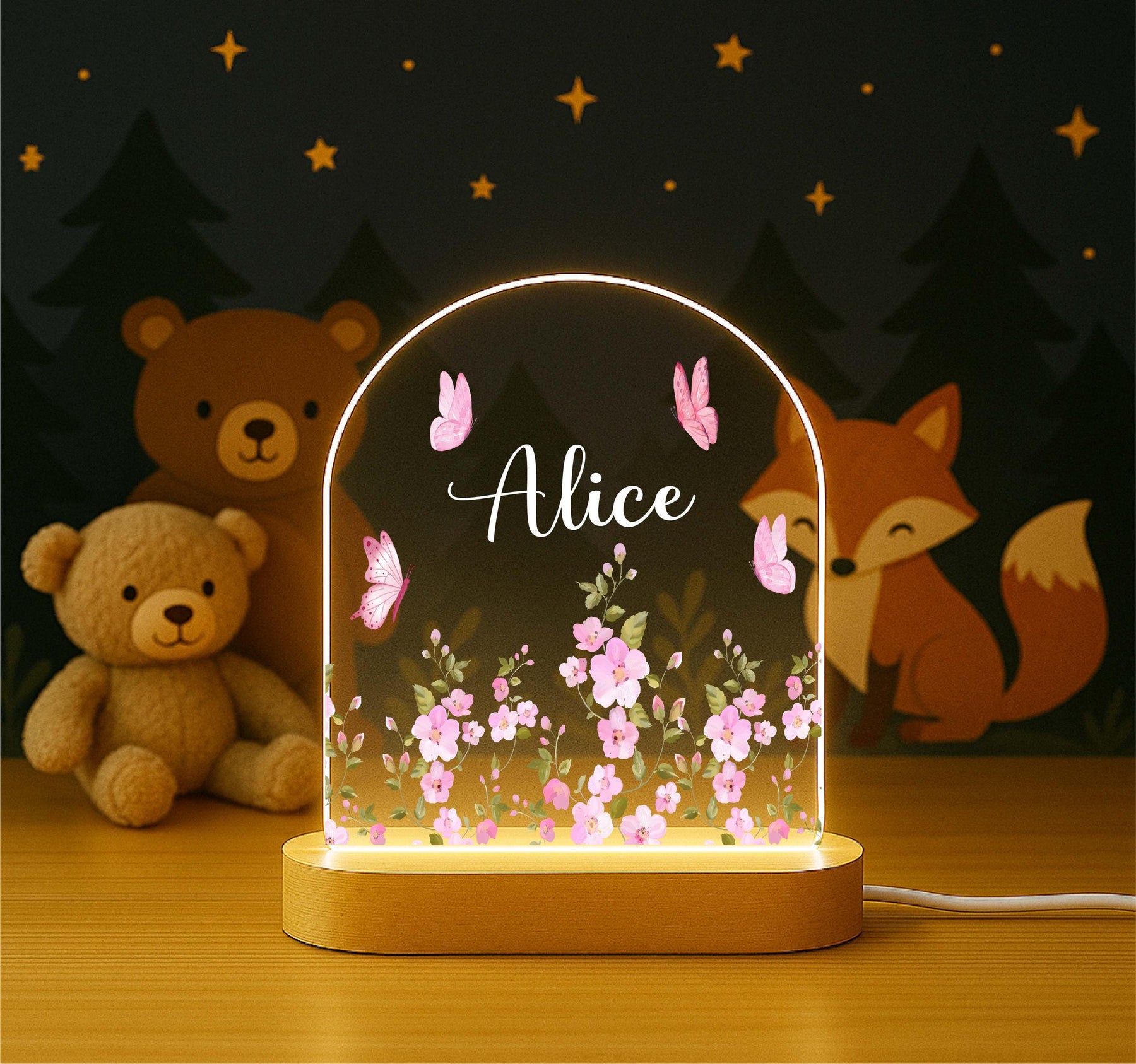 Personalized Butterfly Night Light – Custom Name Floral LED Lamp, Girls Room Decor, Birthday or Nursery Gift