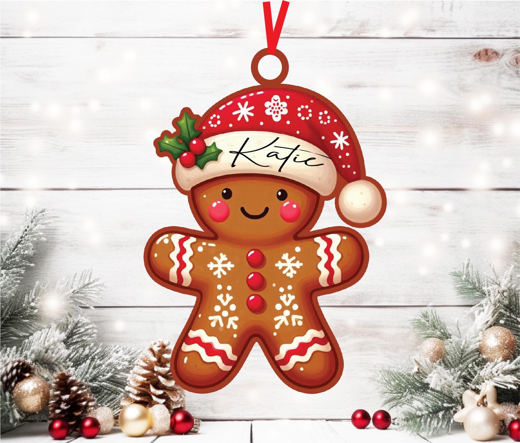 Personalized Family Name Ornament Gingerbread Man Santa Hat