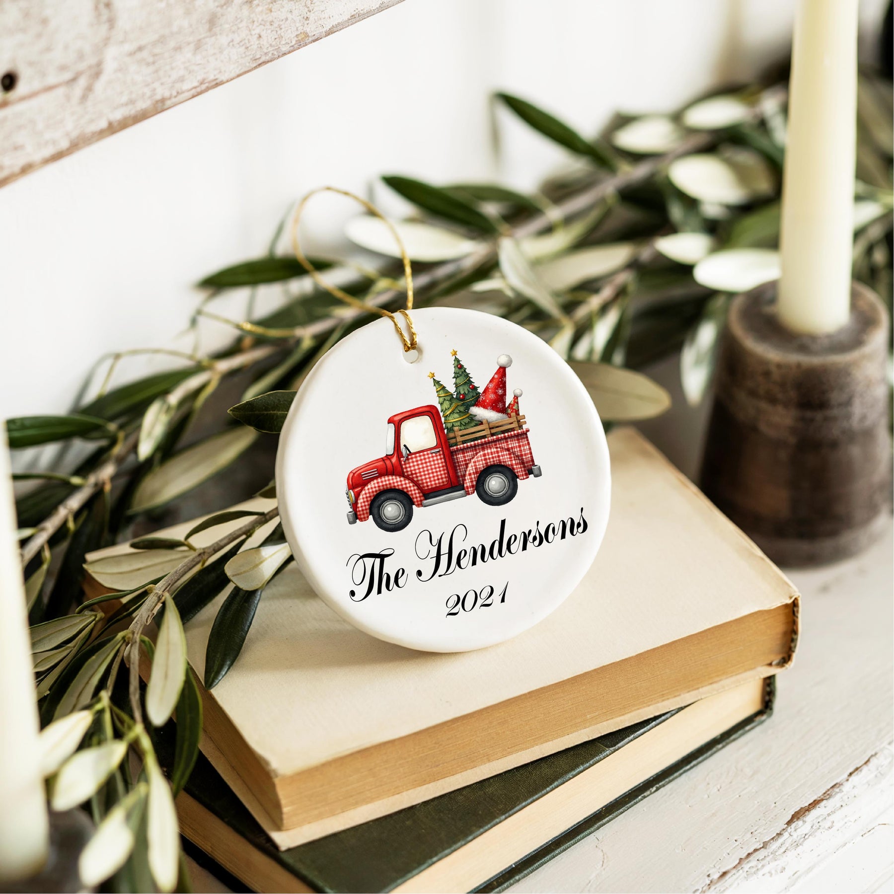 Personalized Red Truck Ornament – Family Christmas Ornament 2025, Custom Name Holiday Keepsake, Rustic Farmhouse Xmas Tree Décor