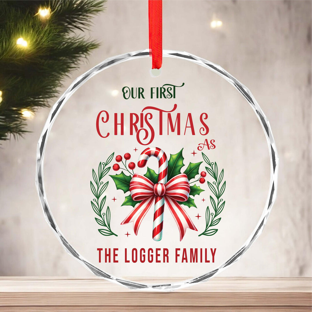 Personalized Candy Cane Glass Ornament 2025, Custom Holiday Gift Our First Christmas as Family Ornament