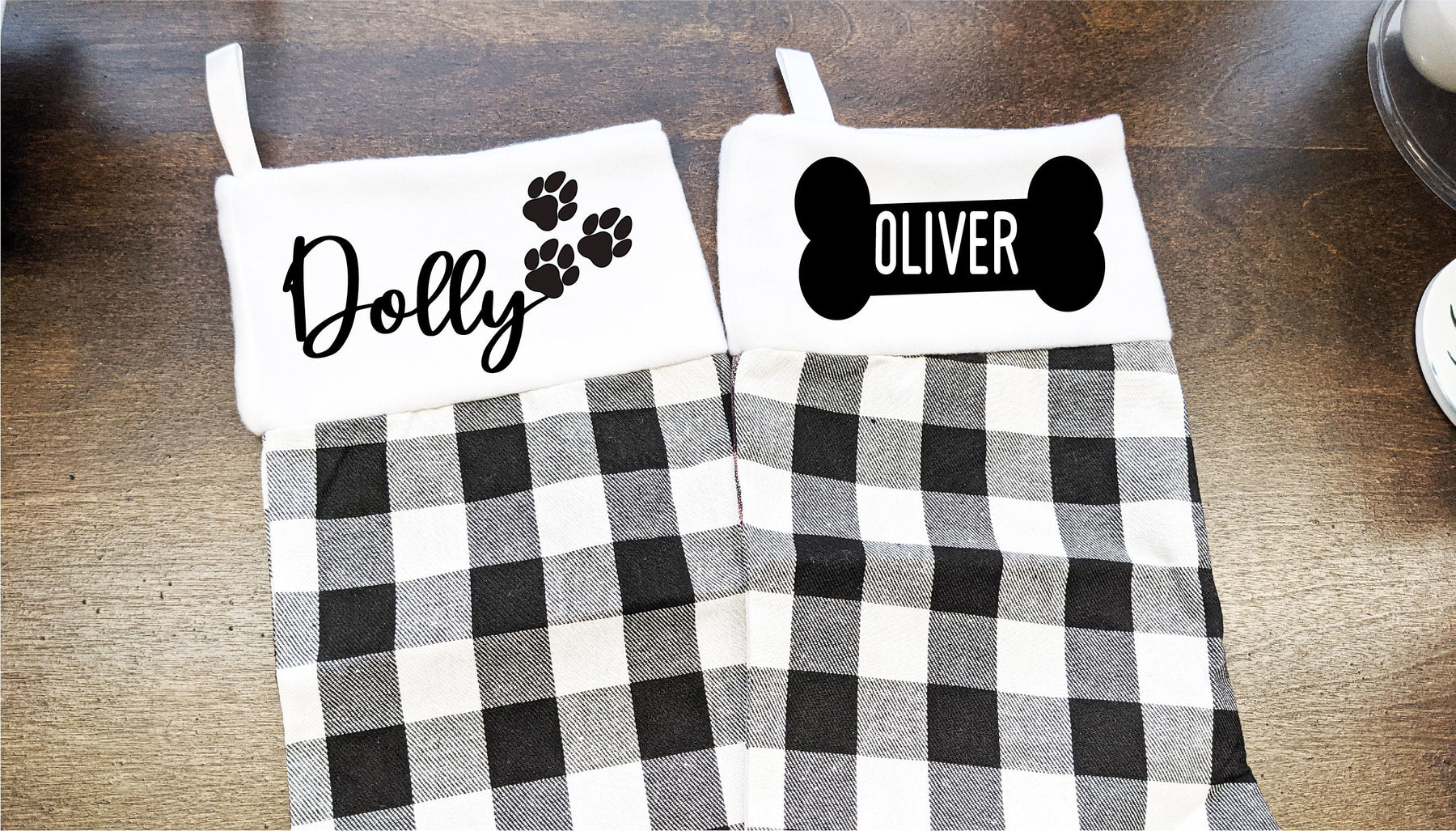 Buffalo Plaid Pet Name Christmas Stockings with Paw and Bone