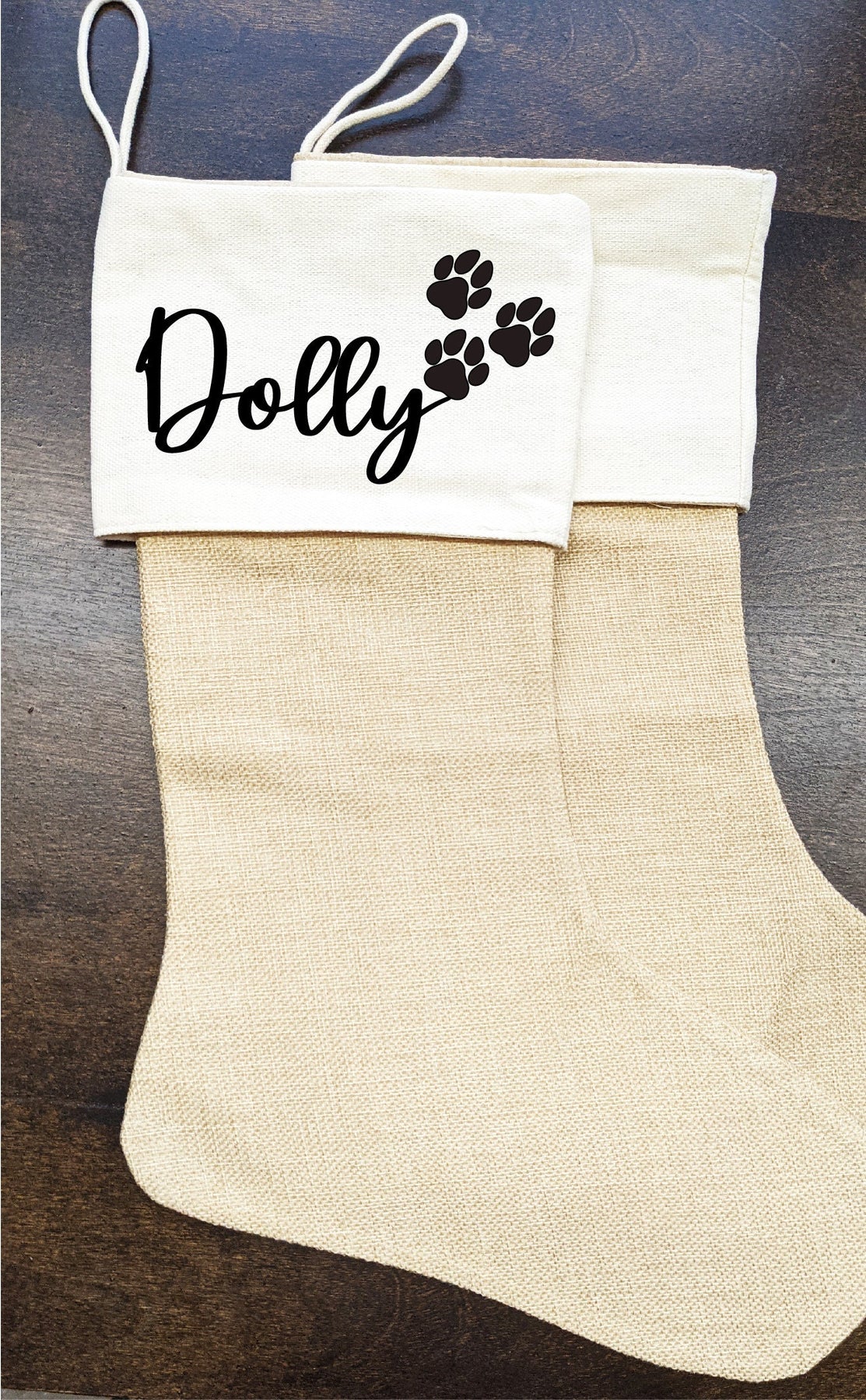 Crafted from high-quality materials, the buffalo plaid and burlap blend brings a rustic farmhouse style that fits perfectly into any home. Our stockings measure 16 inches for burlap and 18 inches for plaid, making them big enough to hold all your pet’s favorite goodies. The personalized name, approximately 3 inches wide, adds a heartfelt touch, ensuring your pet feels special this Christmas.