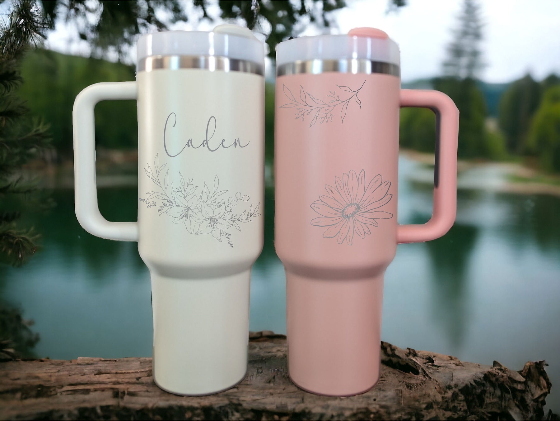 Order your Personalized Tumbler with handle Custom Engraved Tumbler Double Wall Insulated Cup Mothers day gift for mama Floral travel cup 40 oz gifts today and elevate your drinking experience with style and personalization!