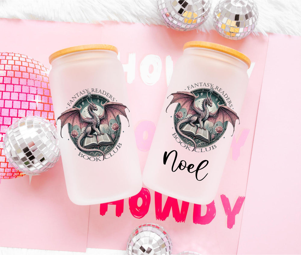 Delight the book lover in your life with our Personalized Book Lover Gift: Fantasy Reader Book Club Iced Coffee Cup. This stunning 16oz glass tumbler is not just a drinkware item; it's a celebration of their passion for books and fantasy adventures.