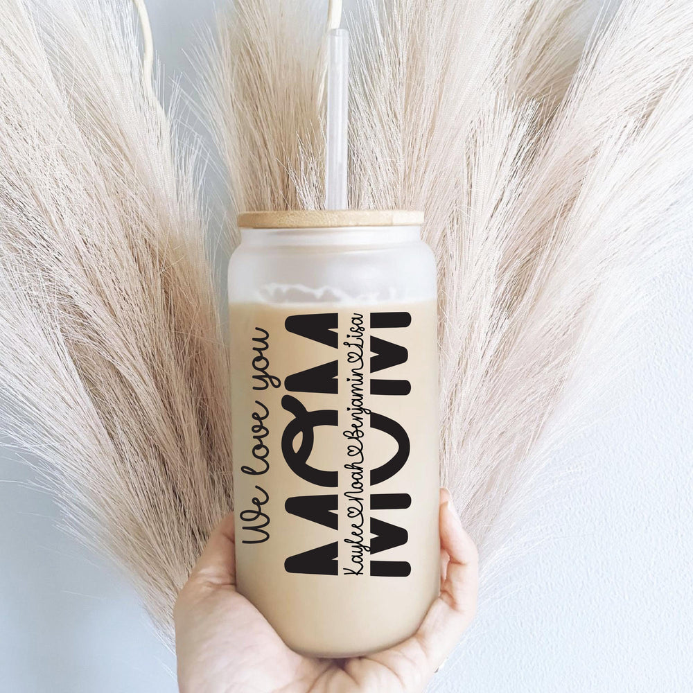 Celebrate the incredible bond between a mother and her children with our Personalized Mom Glass Cup with Lid. This charming 16oz tumbler is not just a drinkware item; it's a heartfelt expression of love, making it a perfect Mother's Day gift for the special women in your life, whether it's your mom or grandma.