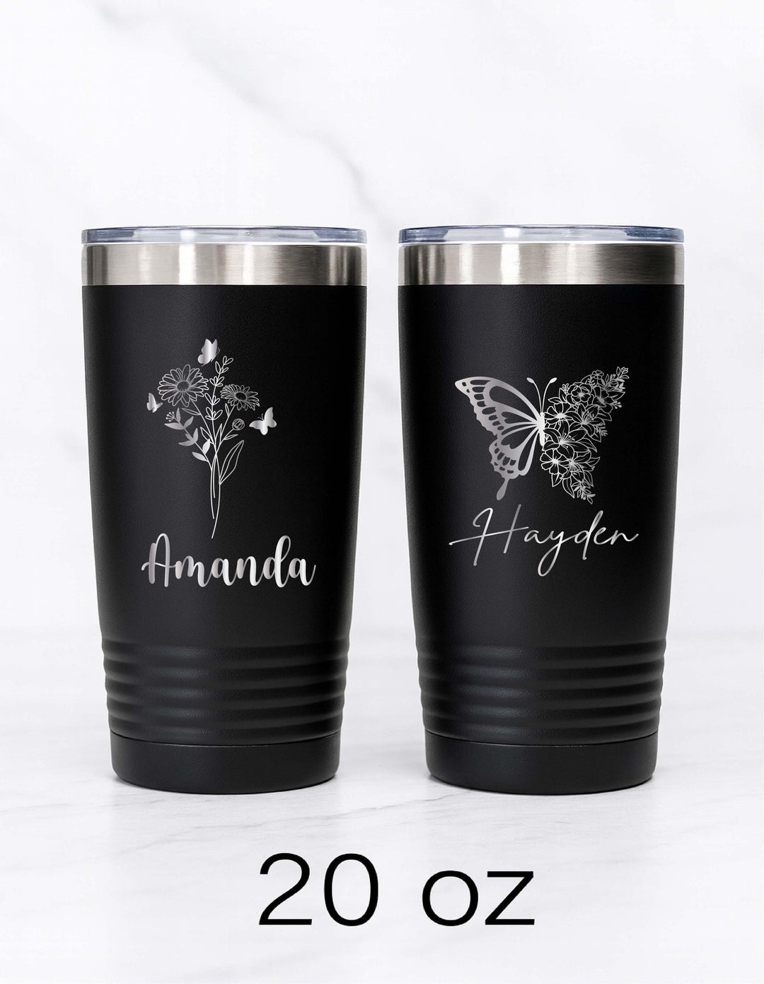 Custom Name Tumbler – Personalized Gift for Mom, Nana, Teacher or Bride – Floral Birth Month Design, Wedding, Birthday, or Christmas Gift