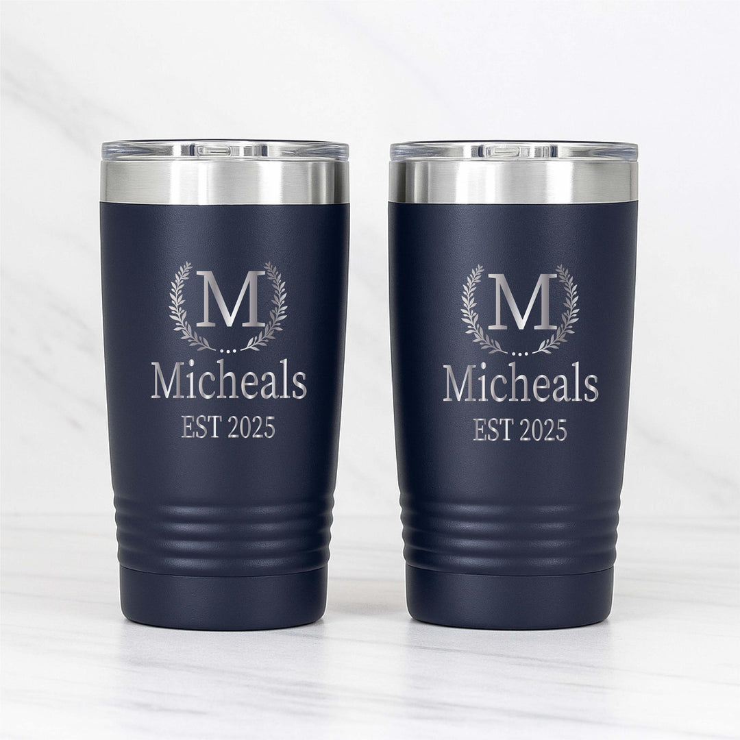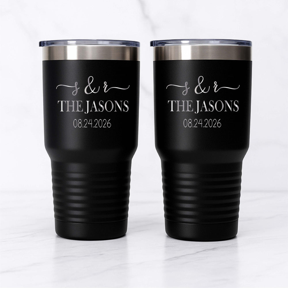 Personalized Couples Tumbler | Custom Engraved 20oz 30oz Cup | Wedding Gift, Anniversary, or Engagement Present | Initials & Date