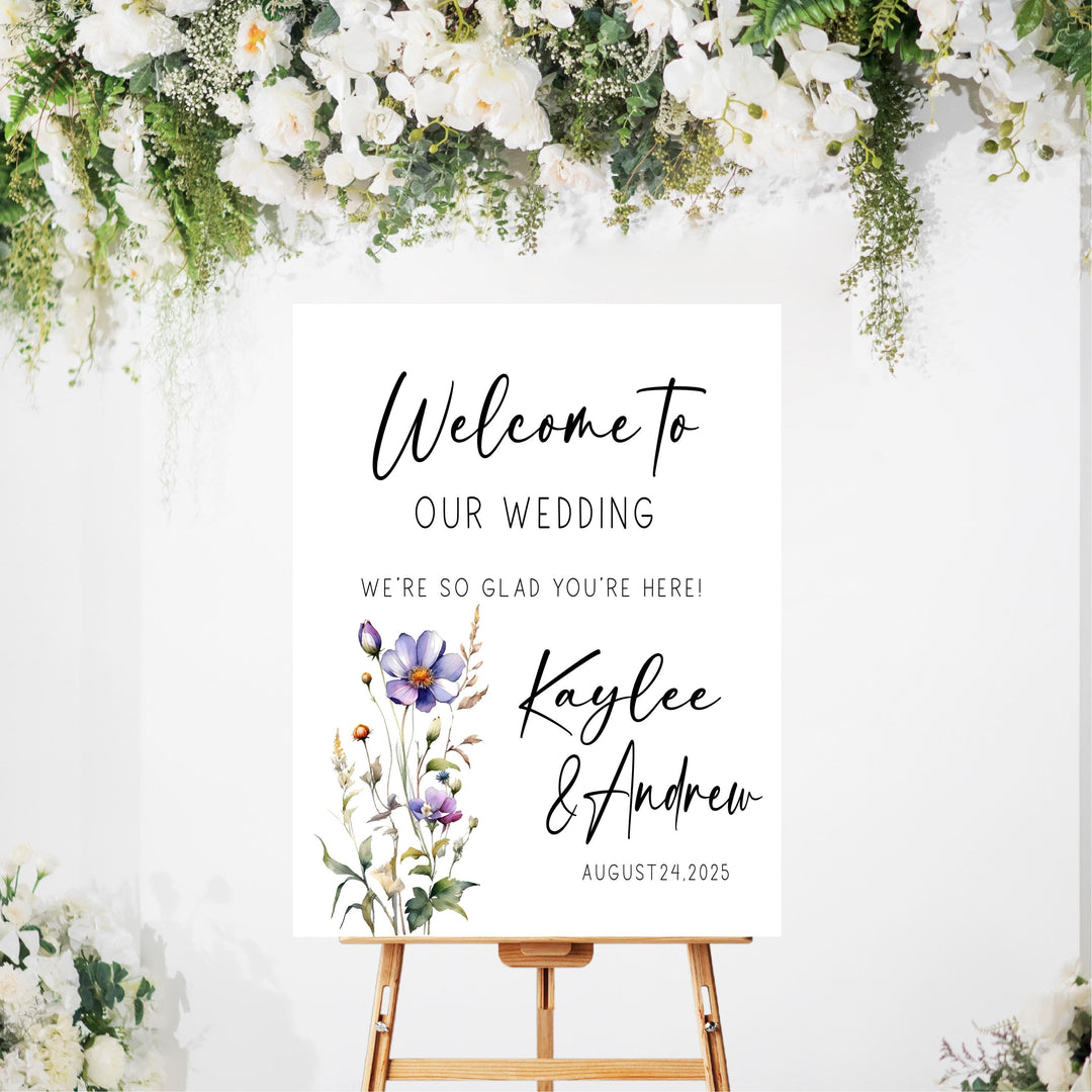 Wild flower Wedding Welcome Signs Welcome To Our Wedding Sign Acrylic lavender floral Personalized wedding Reception sign Bride groom name