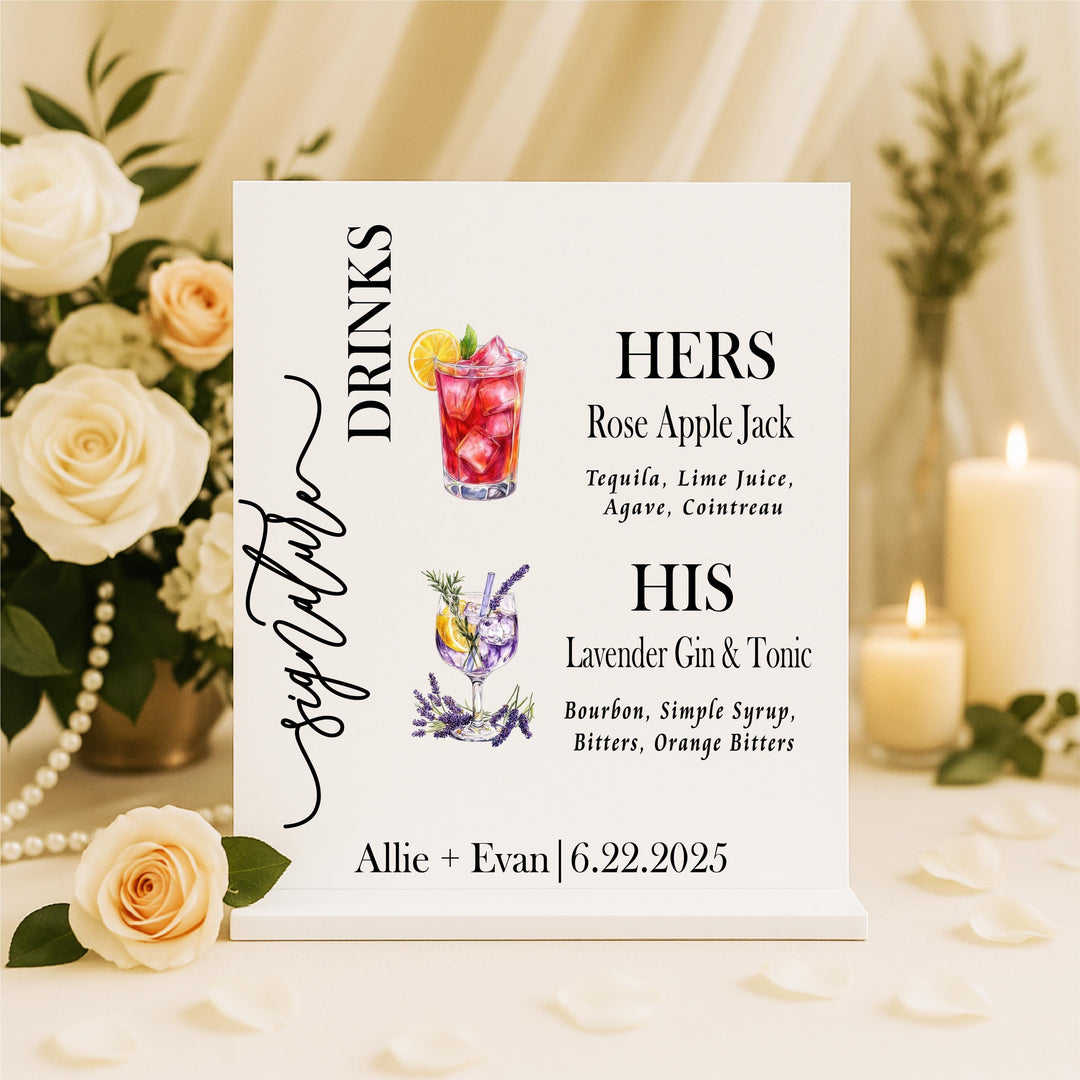 Personalized Wedding Signature Drinks Sign: Custom Acrylic Bar Menu