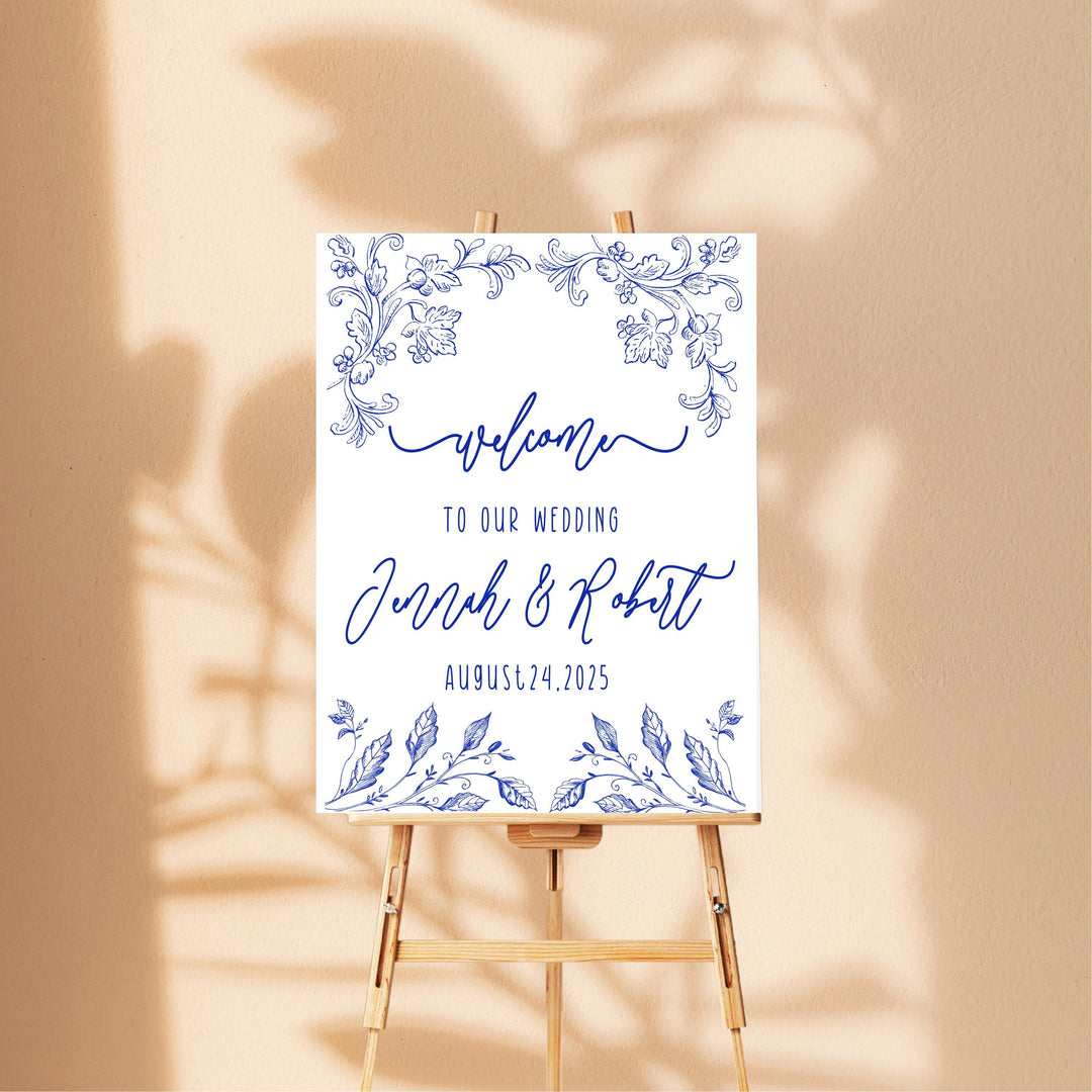 Vintage Cottage core Wedding Welcome Signs Welcome To Our Wedding Sign Acrylic Blue floral Personalized wedding Reception sign