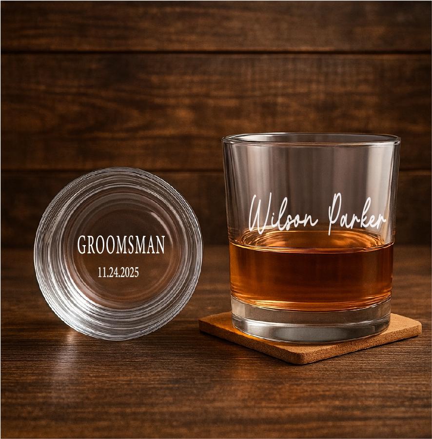 Personalized Engraved Whiskey Glass β Custom Groomsmen Gift, Best Man Bourbon Glass, Wedding Party Favor
